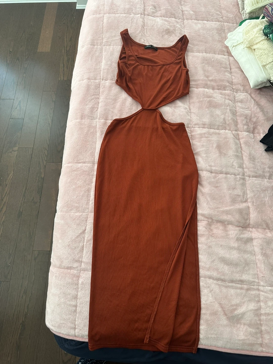 SHEIN Cutout Ribbed Maxi Dress - Rust