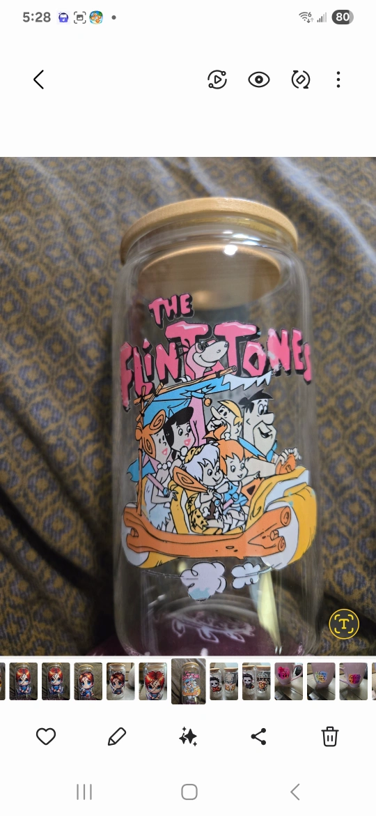 Glass jars with wooden lids. Flintstones graphic. Chucky graphic. A great way to bring a bit of joy to your daily routine, maybe with your favourite tea.