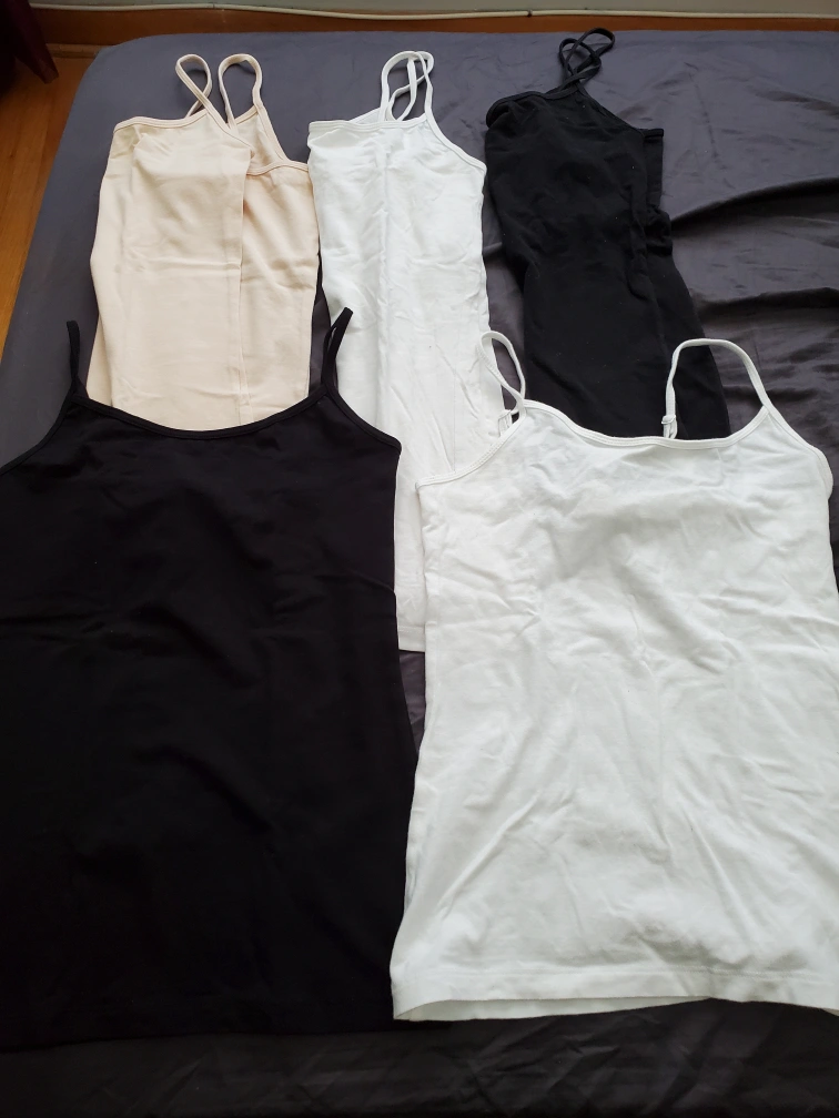 selling 5 tank tops, some size small and medium for $2 altogether.
