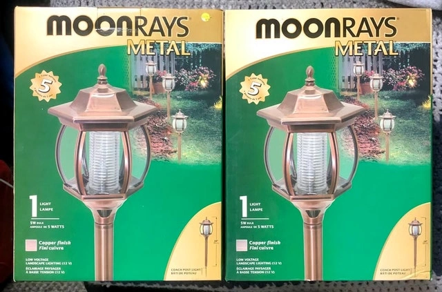 Moonrays Coach Post Lights – Elegant Copper Finish! Brand new, never used. $20 for both lights. Perfect for adding style and brightness to your outdoor space. Pickup in Downtown Calgary.