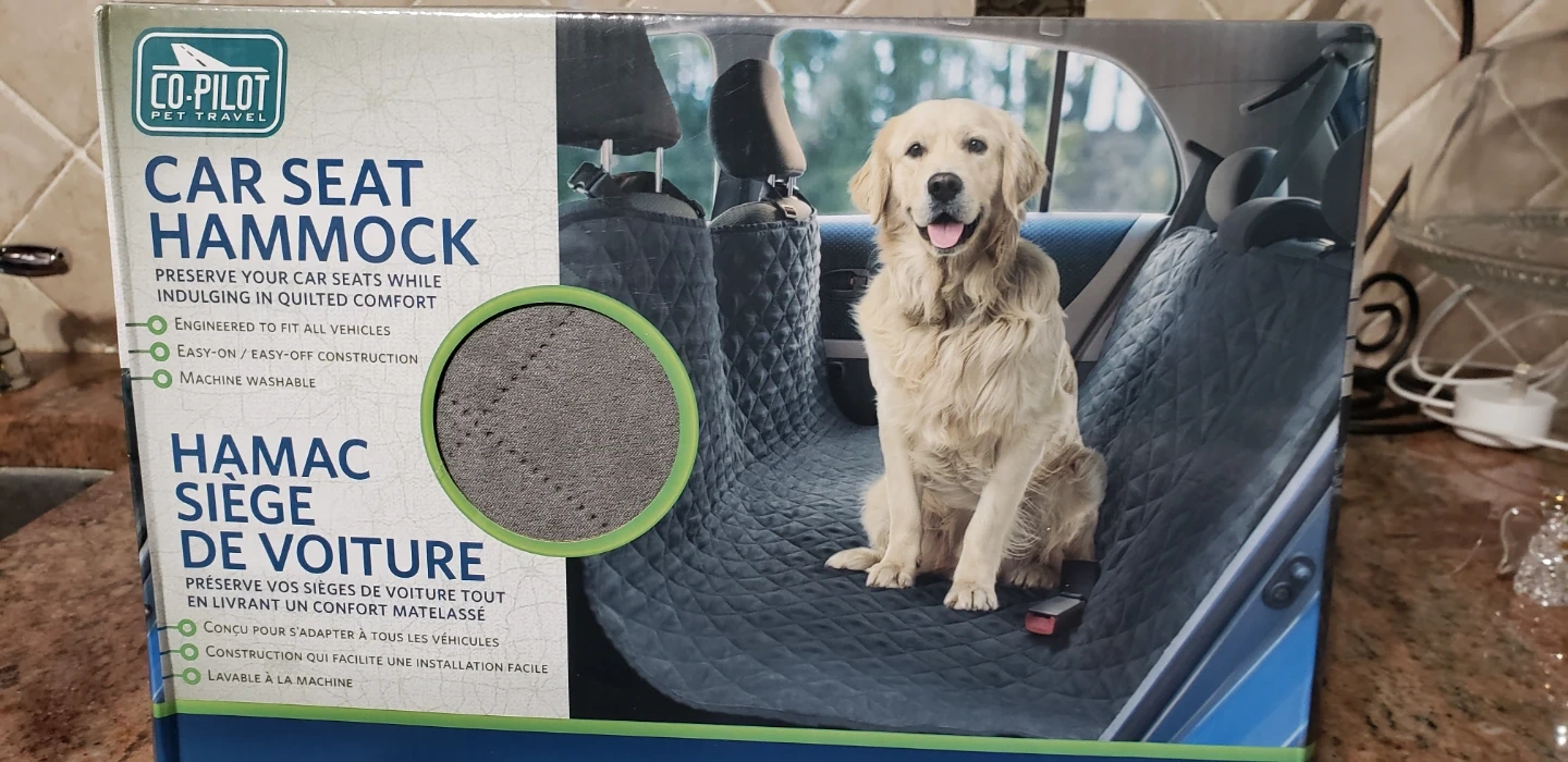 I'm selling a CO-PILOT Pet Travel car seat hammock. It's designed to preserve your car seats while indulging your furry friend in quilted comfort! It's engineered to fit all vehicles and has an easy on/off construction. It is also machine washable!