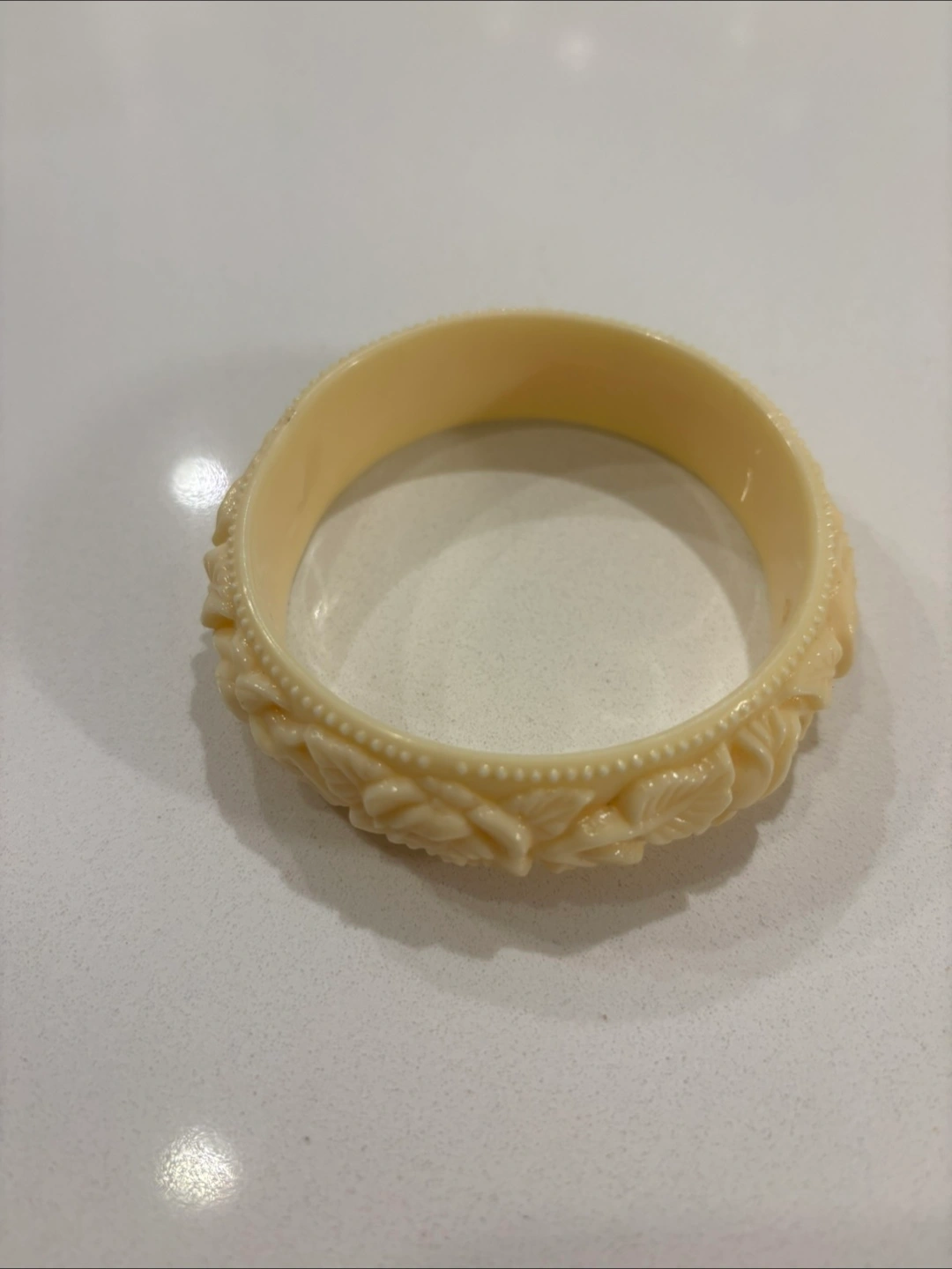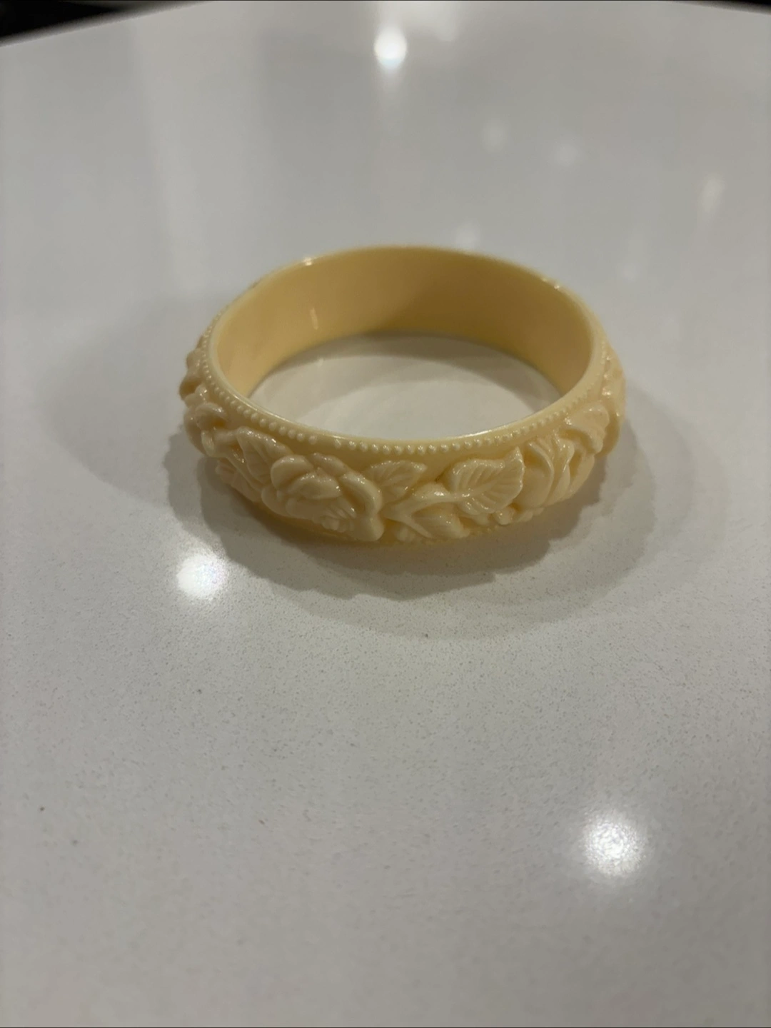 Celluloid Ivory Floral Bracelet For Sale. Excellent - like new condition. 2.5” in diameter. East Regina pick up. Listed on other sites.