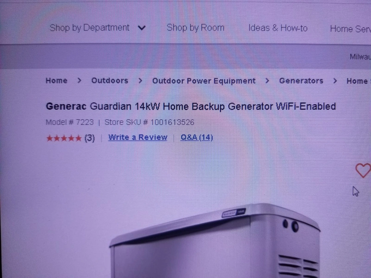 I have a brand new generator the brand is generac it’s a backup generator if your interested message me and price is firm just the packaging is distressed nothing else and no low balls the specs are in the pictures