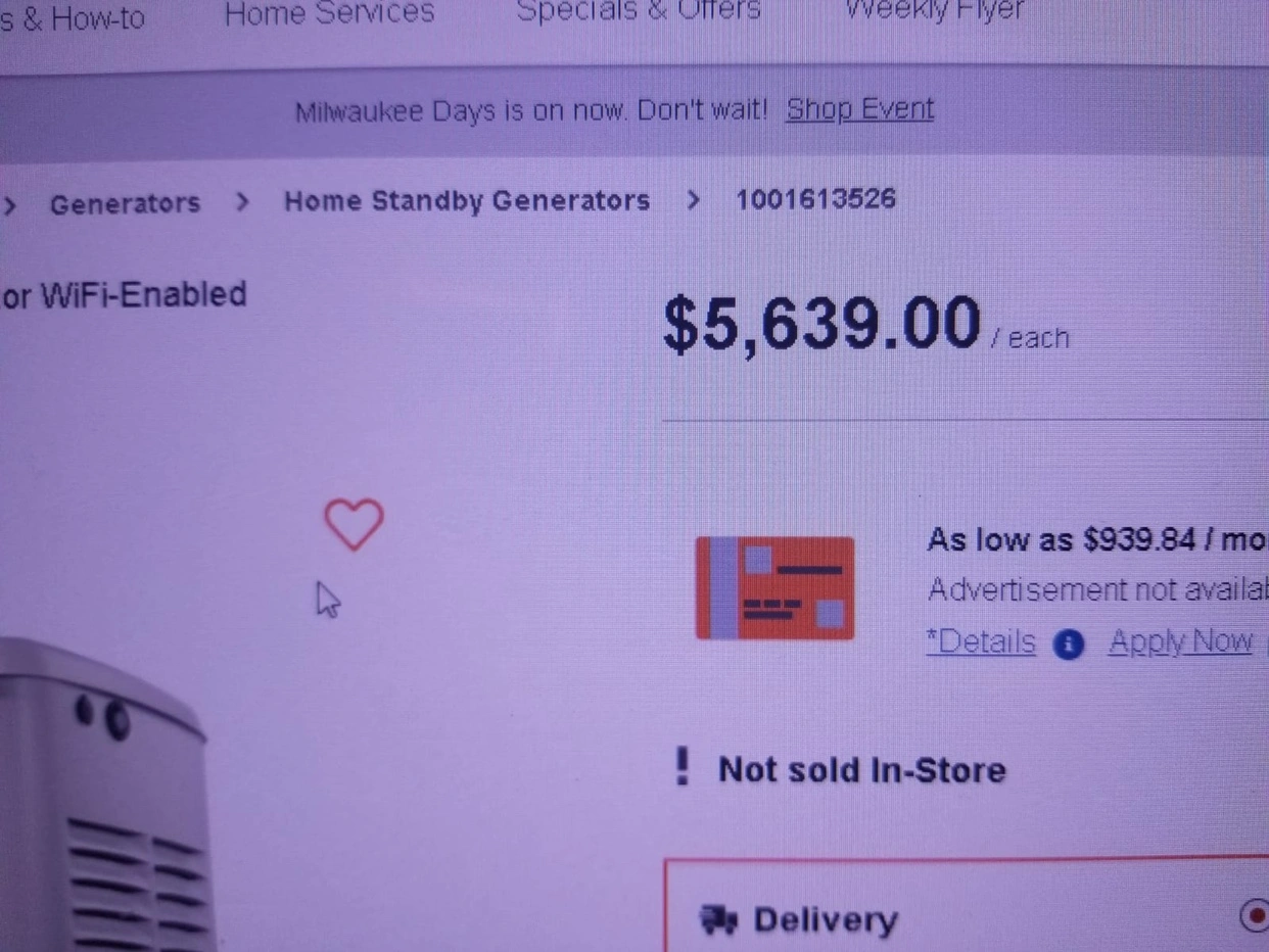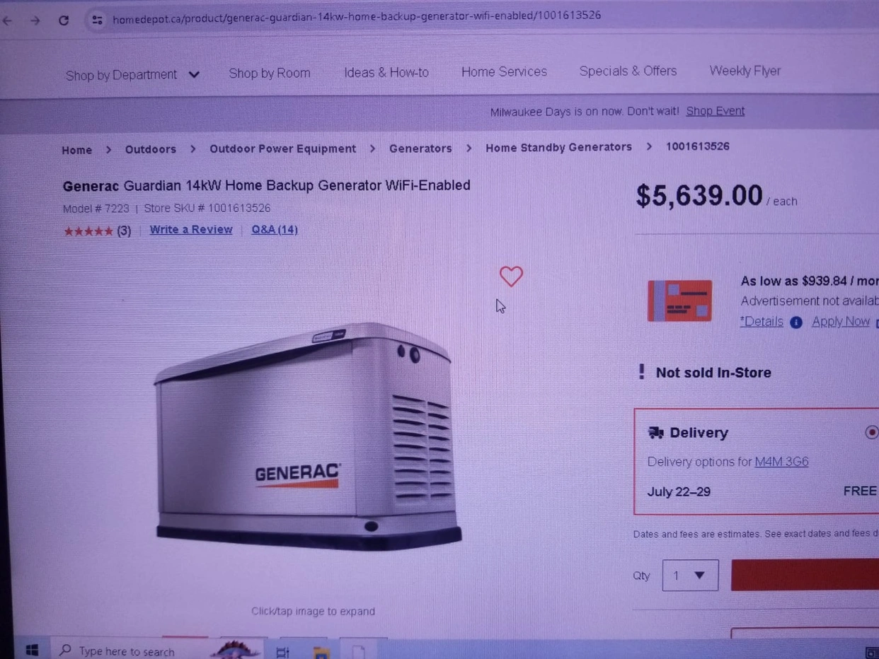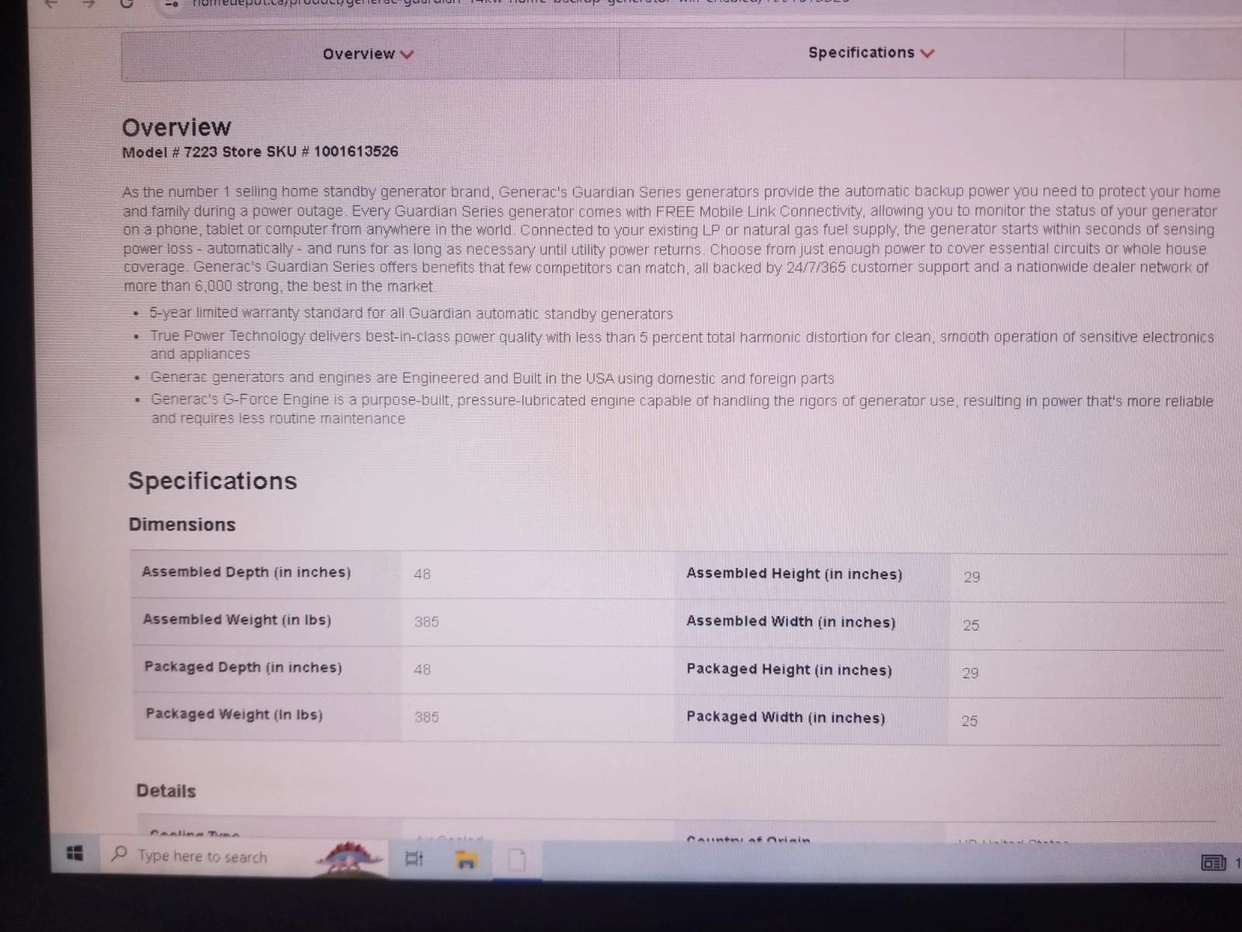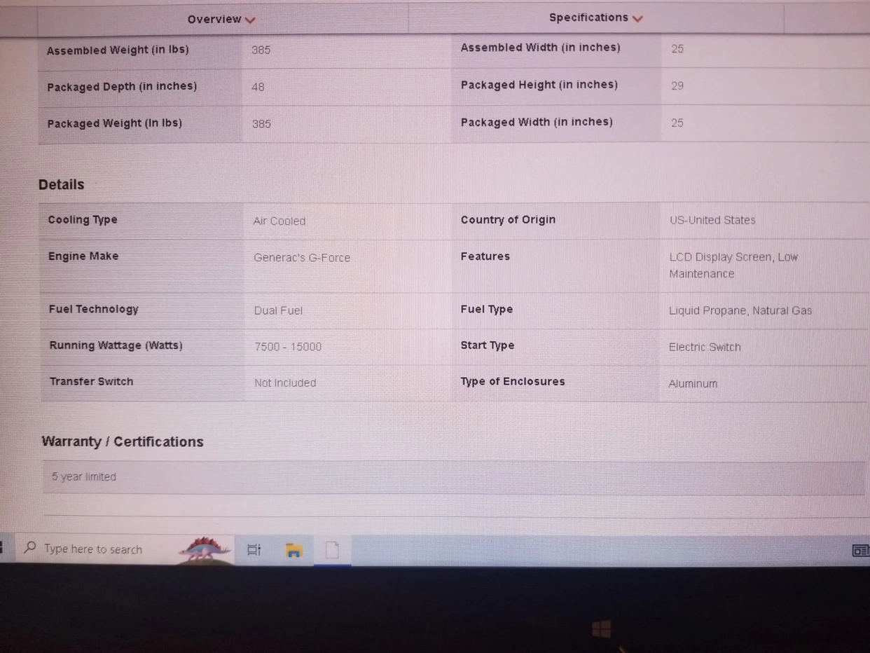 I have a brand new generator the brand is generac it’s a backup generator if your interested message me and price is firm just the packaging is distressed nothing else and no low balls the specs are in the pictures