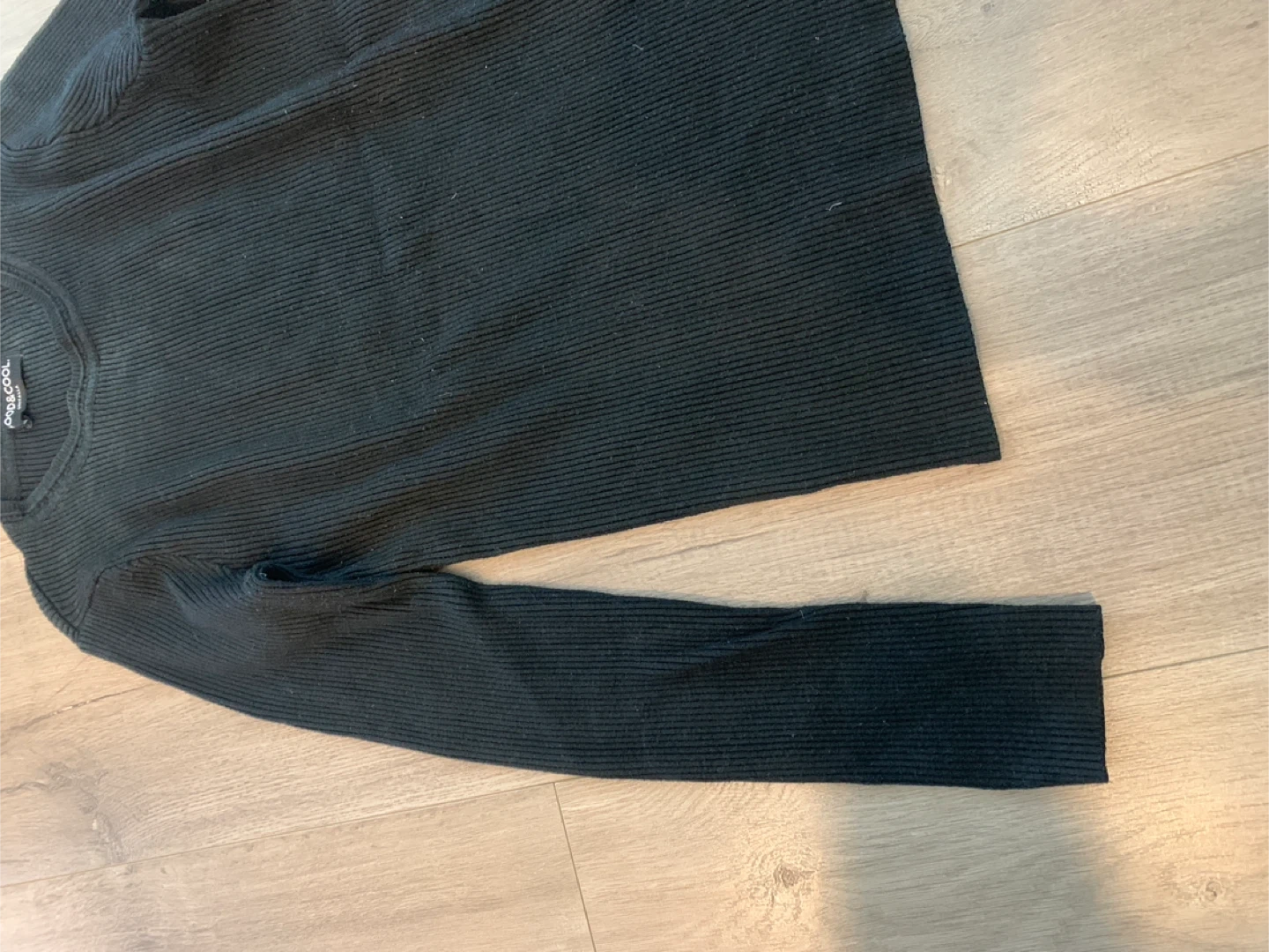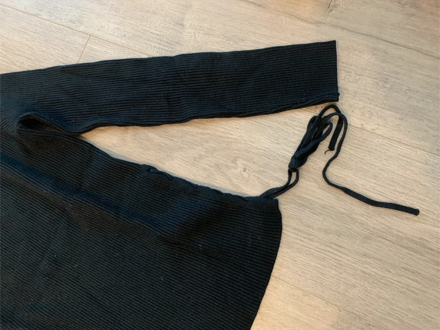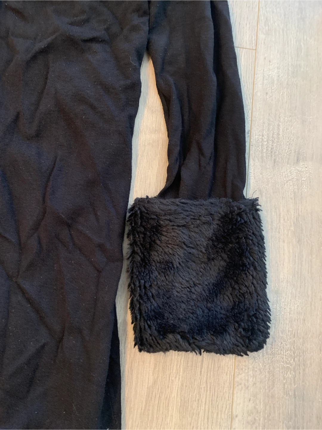 This is a black STUDIO F cardigan. It features contrasting fuzzy cuffs. Size is XS. Also included another black shirt. pick up only.