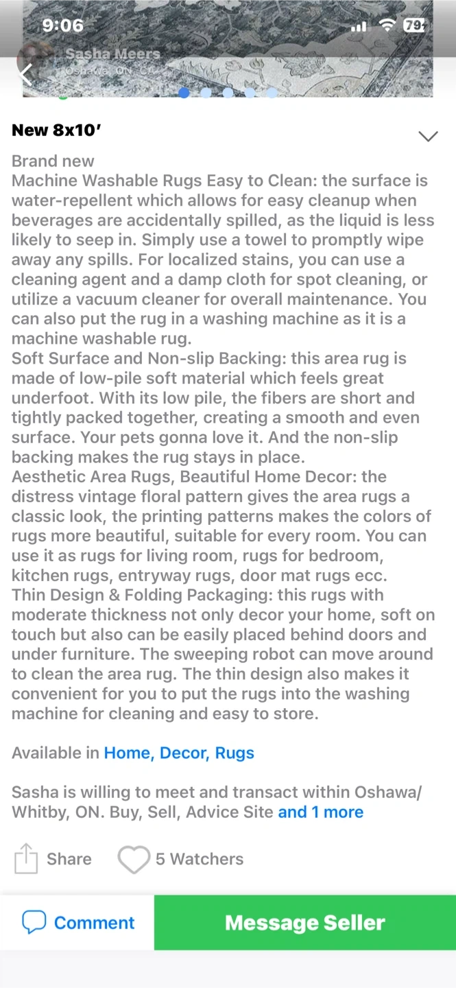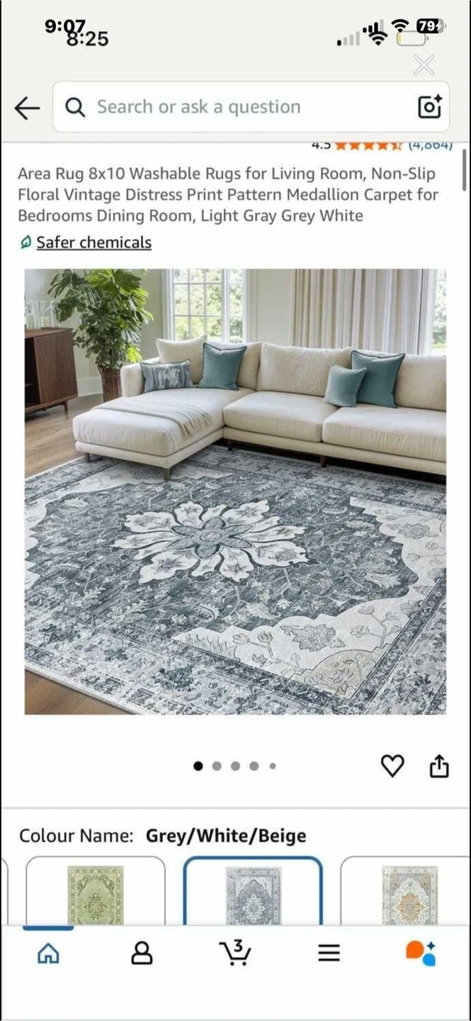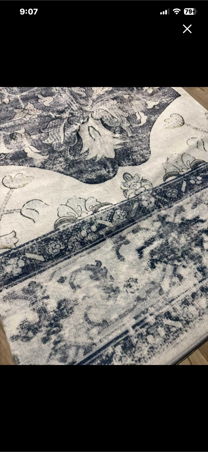 This 8x10 area rug features a distressed floral pattern that's water repellent and easy to clean. It's machine washable and has a non-slip backing. The soft surface pile height is 0.2 inches.