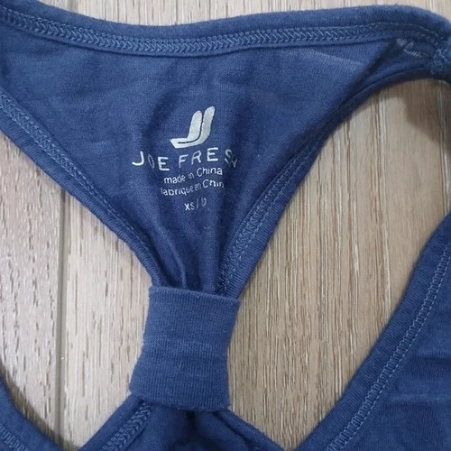 Joe Fresh Athletic Racerback Tank. Size XS. Length: 22". Dark blue and purple. Racerback with gathered strap detail. Adjustable drawstring hem. Lightweight breathable fabric. Great pre-owned condition. No holes or stains noted. Perfect for gym workouts, layering, yoga, or casual athleisure wear.