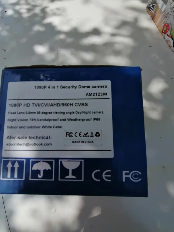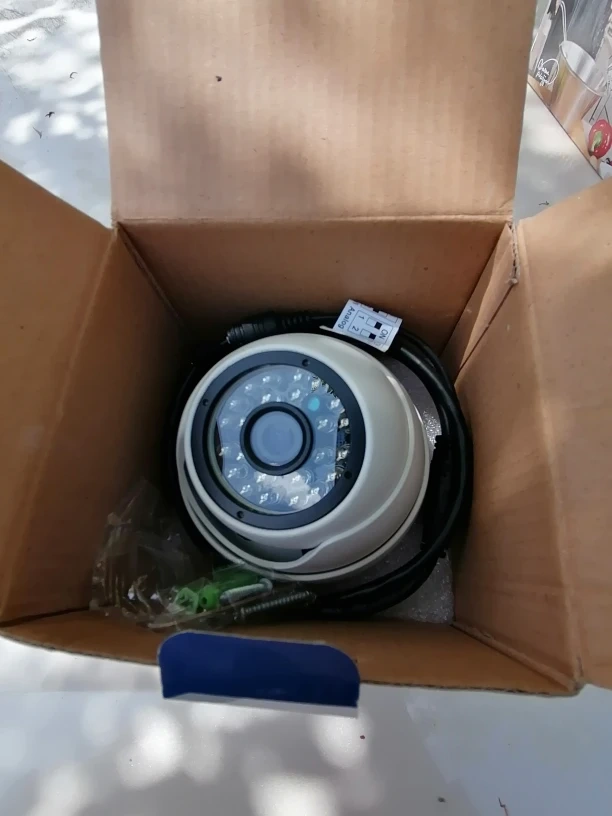 New in box. 1080P HD security dome camera. Fixed lens, 90 degree viewing angle. Day/night camera. Indoor and outdoor use. Vandalproof and weatherproof. White case.