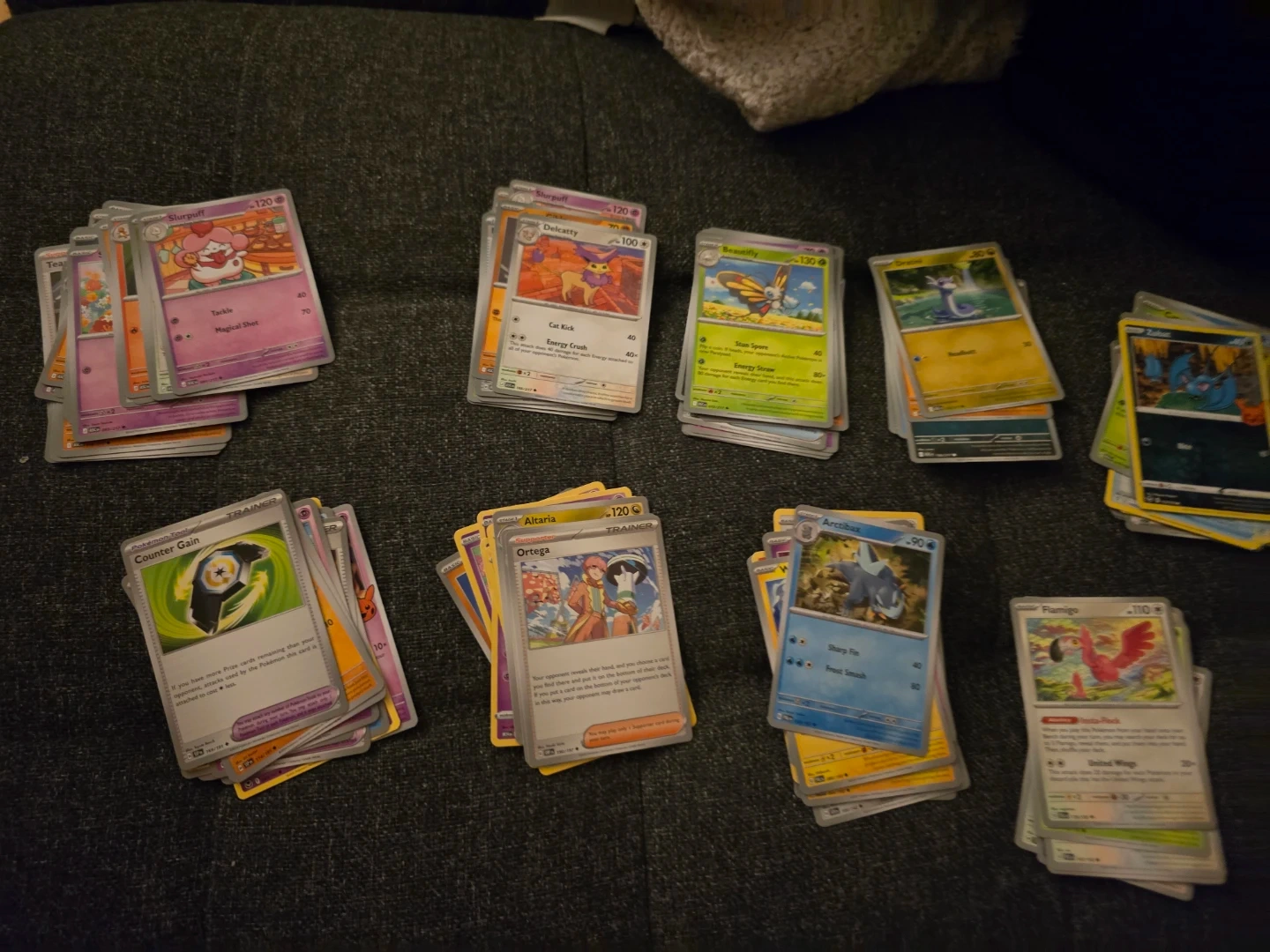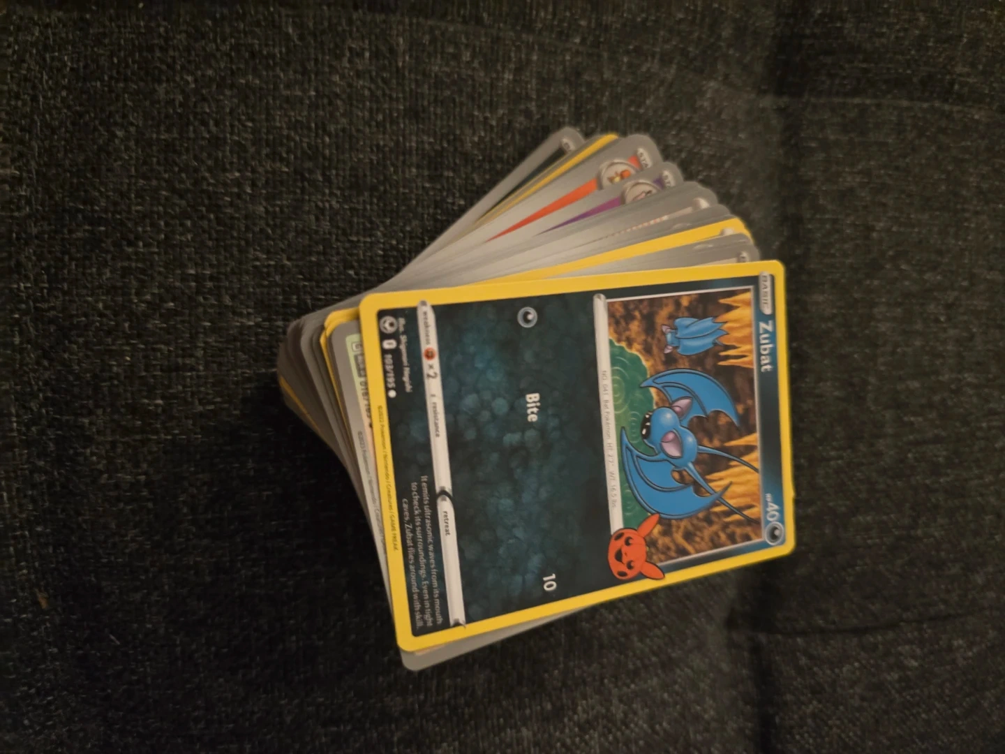 Collection of Pokemon Trading Card Game cards. Various Pokemon are depicted on the cards.