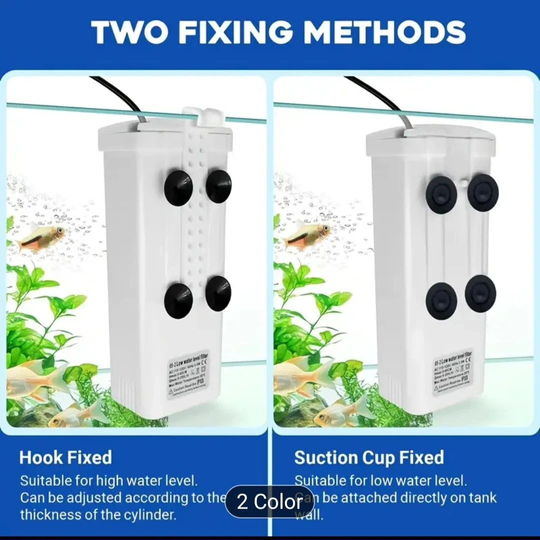 Aquarium/Turtle Tank Filter 74 GPH Low Water Level Aquarium Filter with 2 Replacement Cartridges Suitable for Fish Tanks up to 20 Gallons,