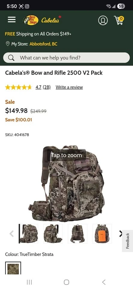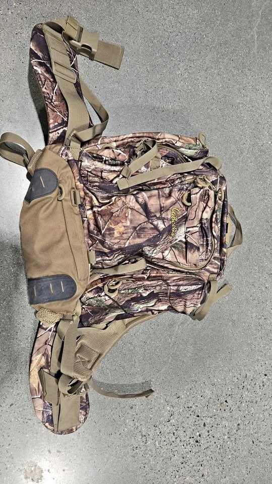 Hunting bag used twice. Clean and everything works as it should. Approx 40L capacity, lots of pockets inside and outside with internal water bladder pocket too. Similar to picture from Cabela's website as this one is discontinued.