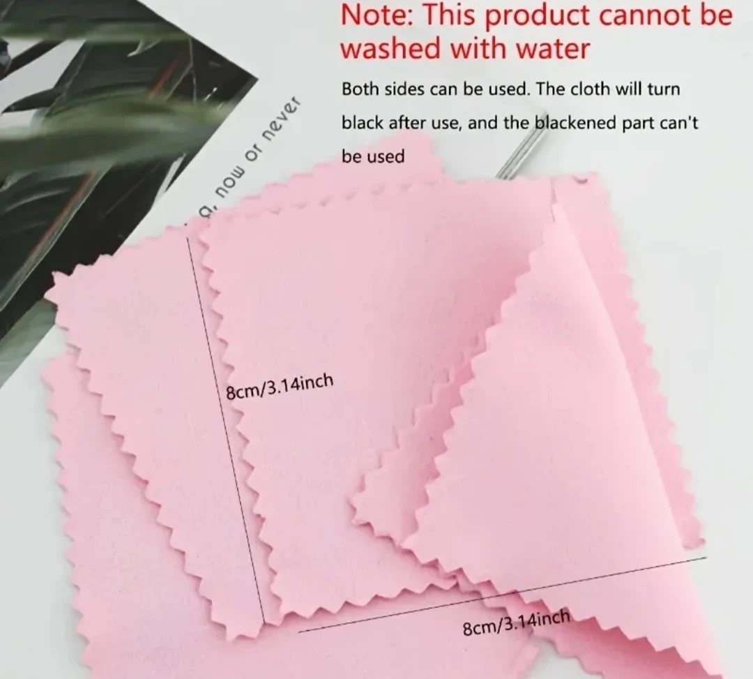 3 sets of thickened jewelry polishing cloths in light purple. Both sides can be used. The cloths are 8cm/3.14inch squares and are designed for cleaning and maintenance. They shine jewelry like new!