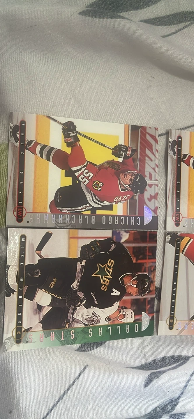 Selling a collection of NHL hockey trading cards. Featuring players from teams like the Chicago Blackhawks, Dallas Stars, Florida Panthers, Detroit Red Wings, and Edmonton Oilers