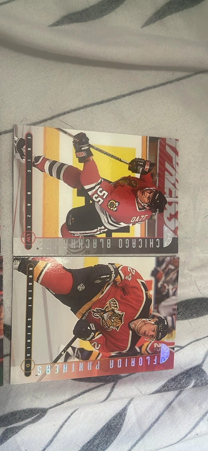 Selling a collection of NHL hockey trading cards. Featuring players from teams like the Chicago Blackhawks, Dallas Stars, Florida Panthers, Detroit Red Wings, and Edmonton Oilers
