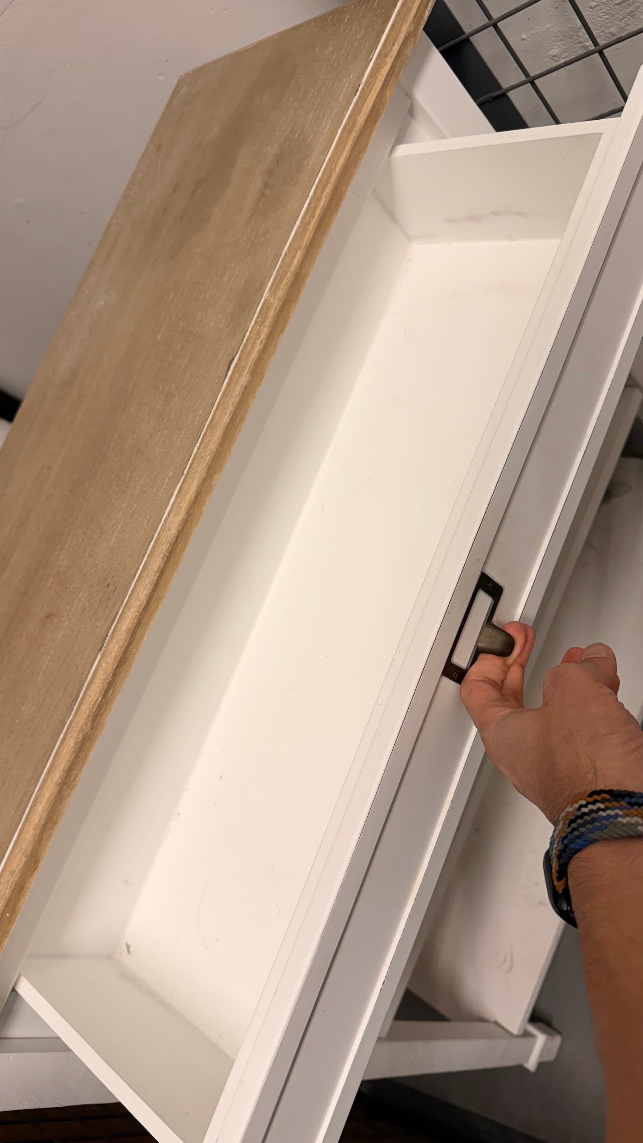 White console table. Good condition, shoe marks can be wiped clean. Some permanent marks & scrapes on the top surface. Gently used for 2 years in a smoke-free home.