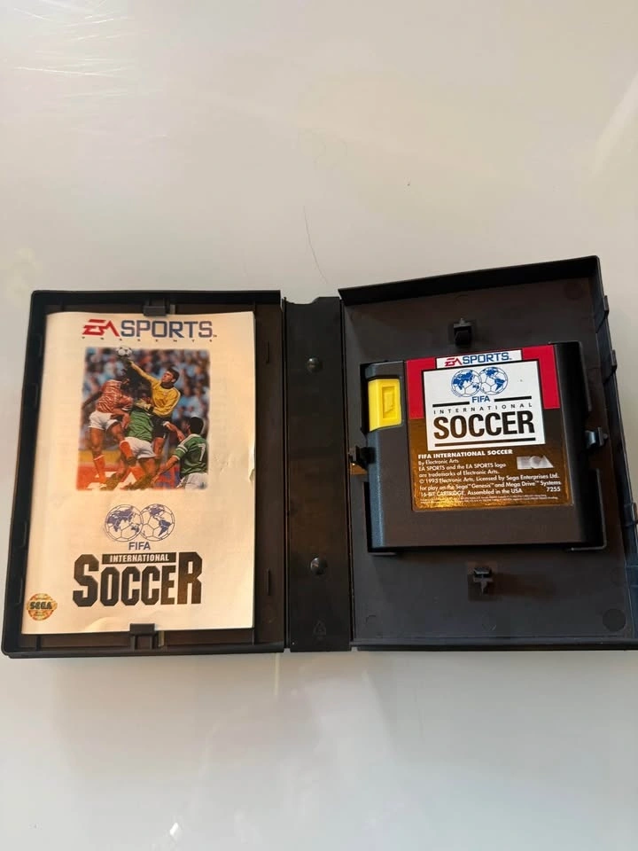 Classic FIFA International Soccer game for Sega Genesis. Complete in Box. Has the game cartridge and original manual inside the case. Great for retro gaming! Pick up Thickson & Columbus, Brooklin.