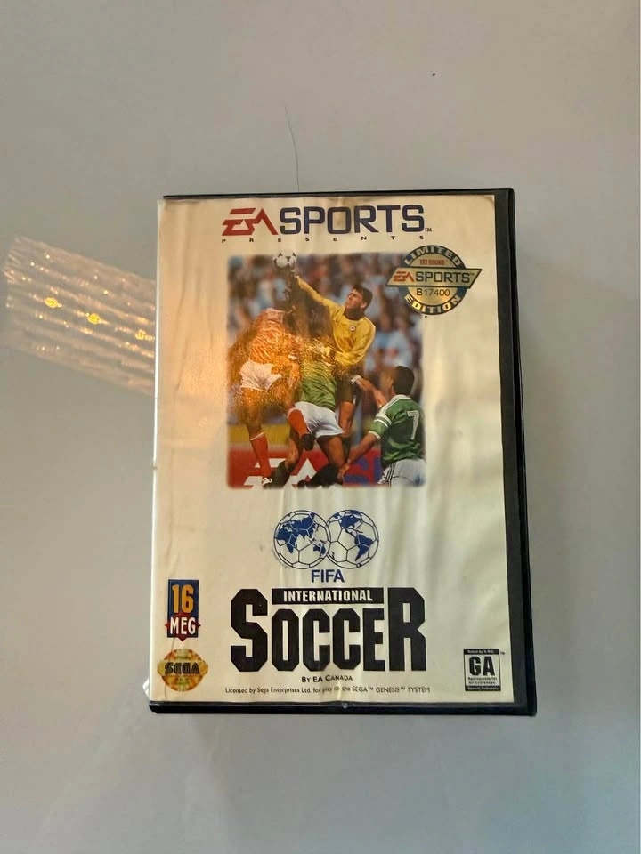 Classic FIFA International Soccer game for Sega Genesis. Complete in Box. Has the game cartridge and original manual inside the case. Great for retro gaming! Pick up Thickson & Columbus, Brooklin.