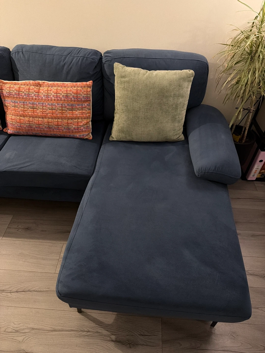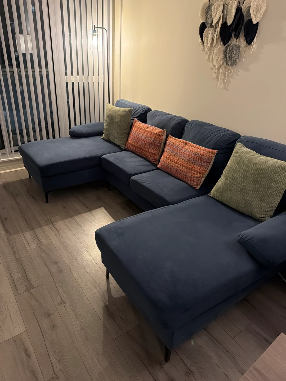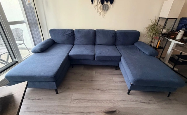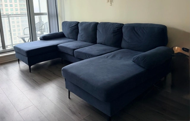 Spacious, cozy, and perfect for movie nights or stretching out after a long day. Comfortable seating for four with a clean modern look. U-shaped sectional. Brackets included (sections stay securely together). Minor wear and tear marks, not easily noticeable. Structurally solid and very comfortable. Pickup in Mississauga. Priced at $400. Great size without the brand-new price tag.