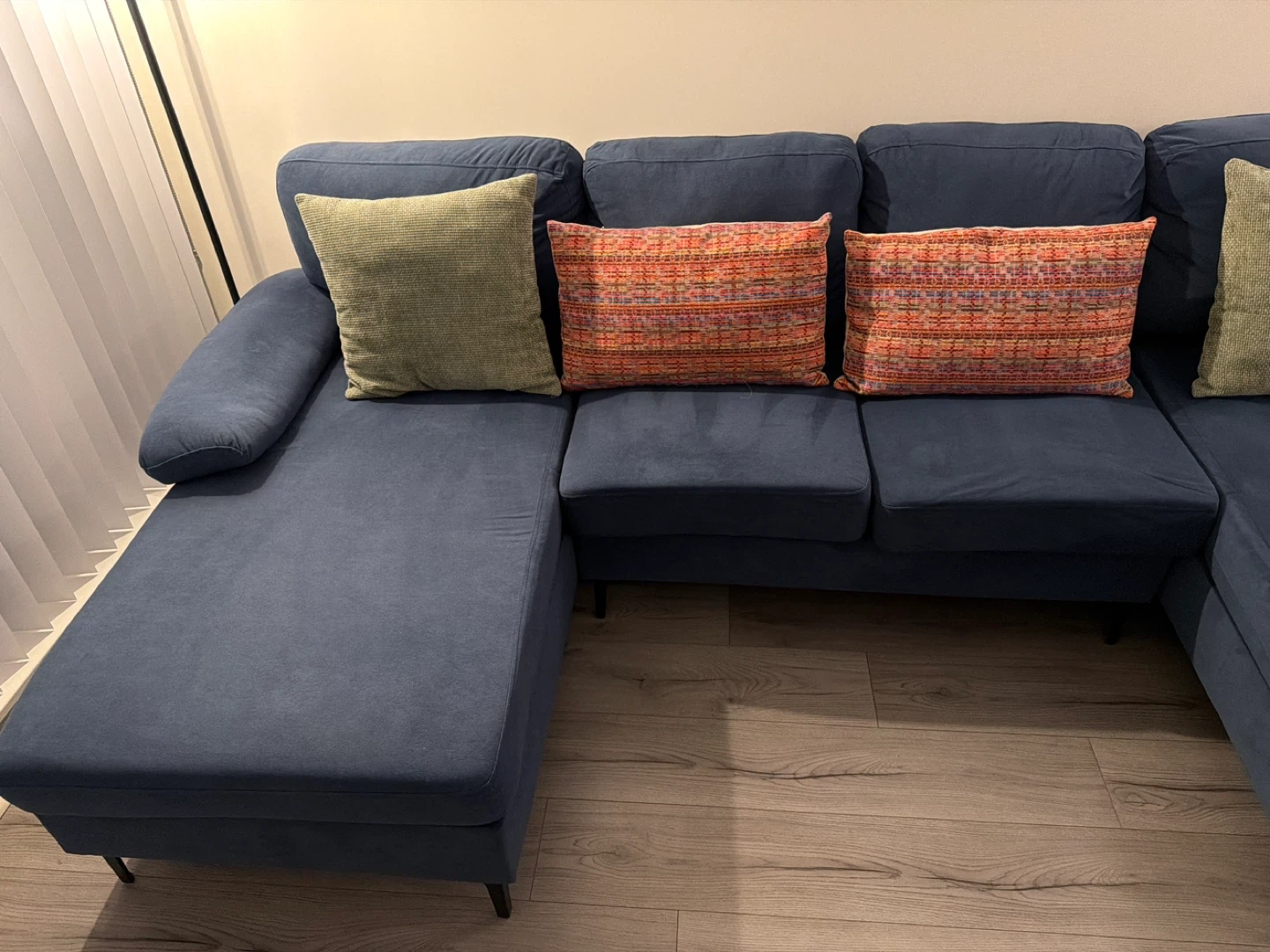 Spacious, cozy, and perfect for movie nights or stretching out after a long day. Comfortable seating for four with a clean modern look. U-shaped sectional. Brackets included (sections stay securely together). Minor wear and tear marks, not easily noticeable. Structurally solid and very comfortable. Pickup in Mississauga. Priced at $400. Great size without the brand-new price tag.
