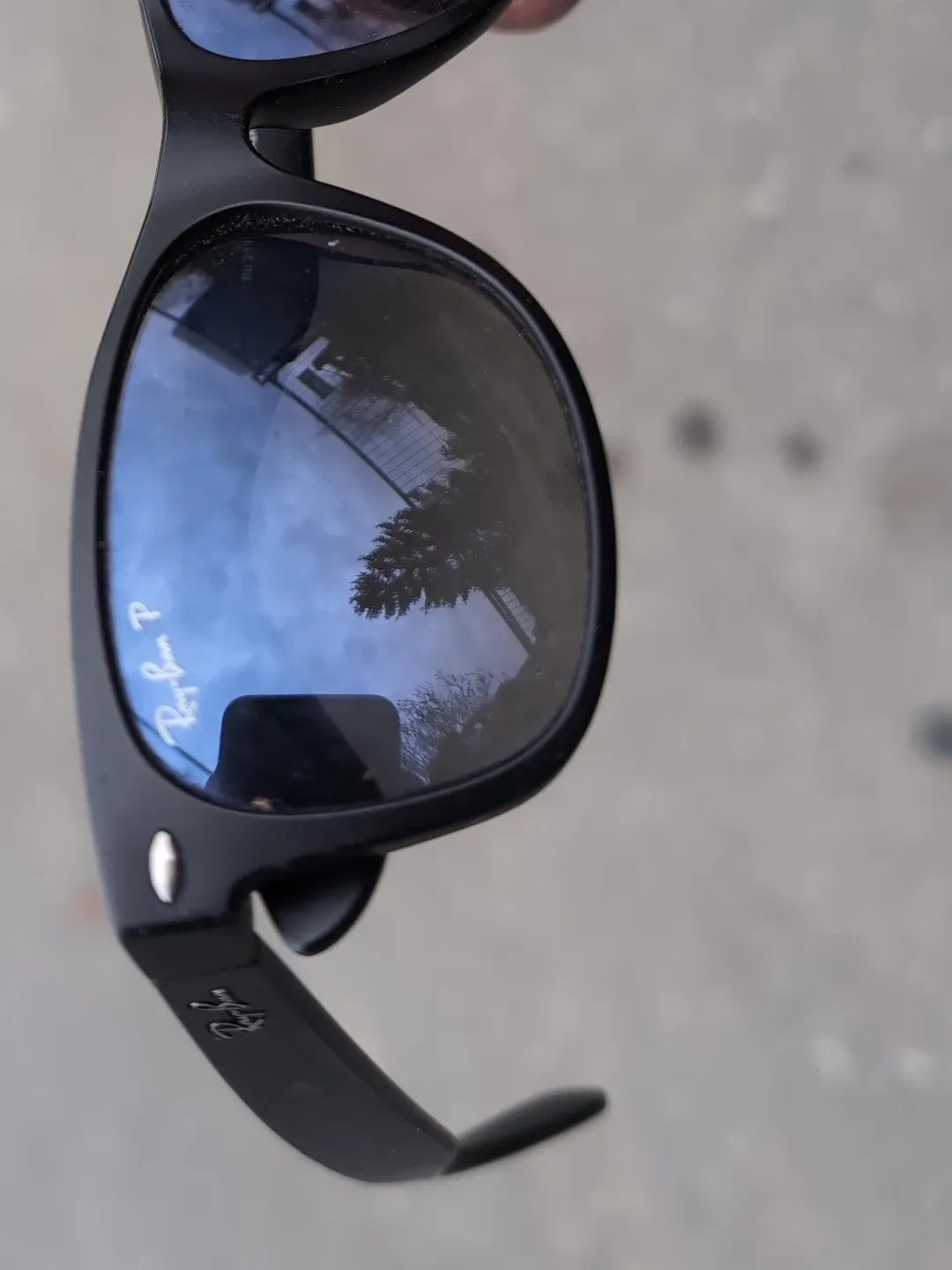 Classic black Ray-Ban sunglasses. These shades offer stylish eye protection. They're a great accessory for sunny days! Comes with case