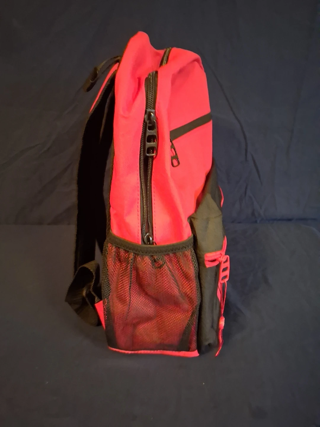 This is a Puma backpack in red and black. It features multiple zippered compartments and side mesh pockets. The padded straps offer comfort for carrying.
