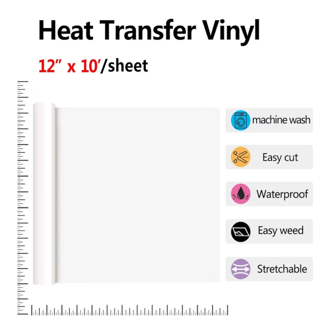 White Vinyl 12Inch Roll PVC HTV White Heat Transfer Vinyl
