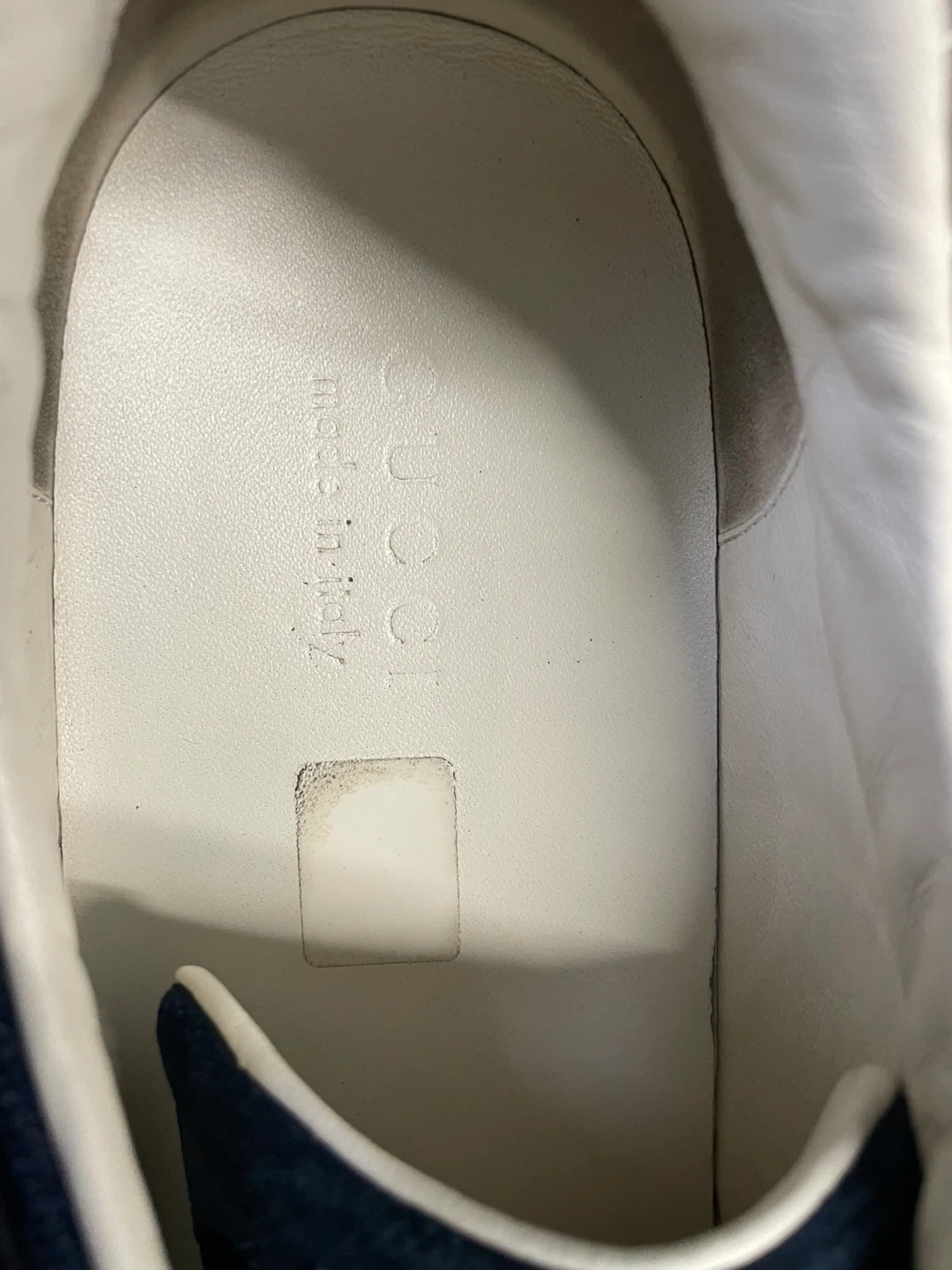 Selling a pair of Gucci sneakers in blue. They are in good condition and feature the iconic Gucci logo on the side and back