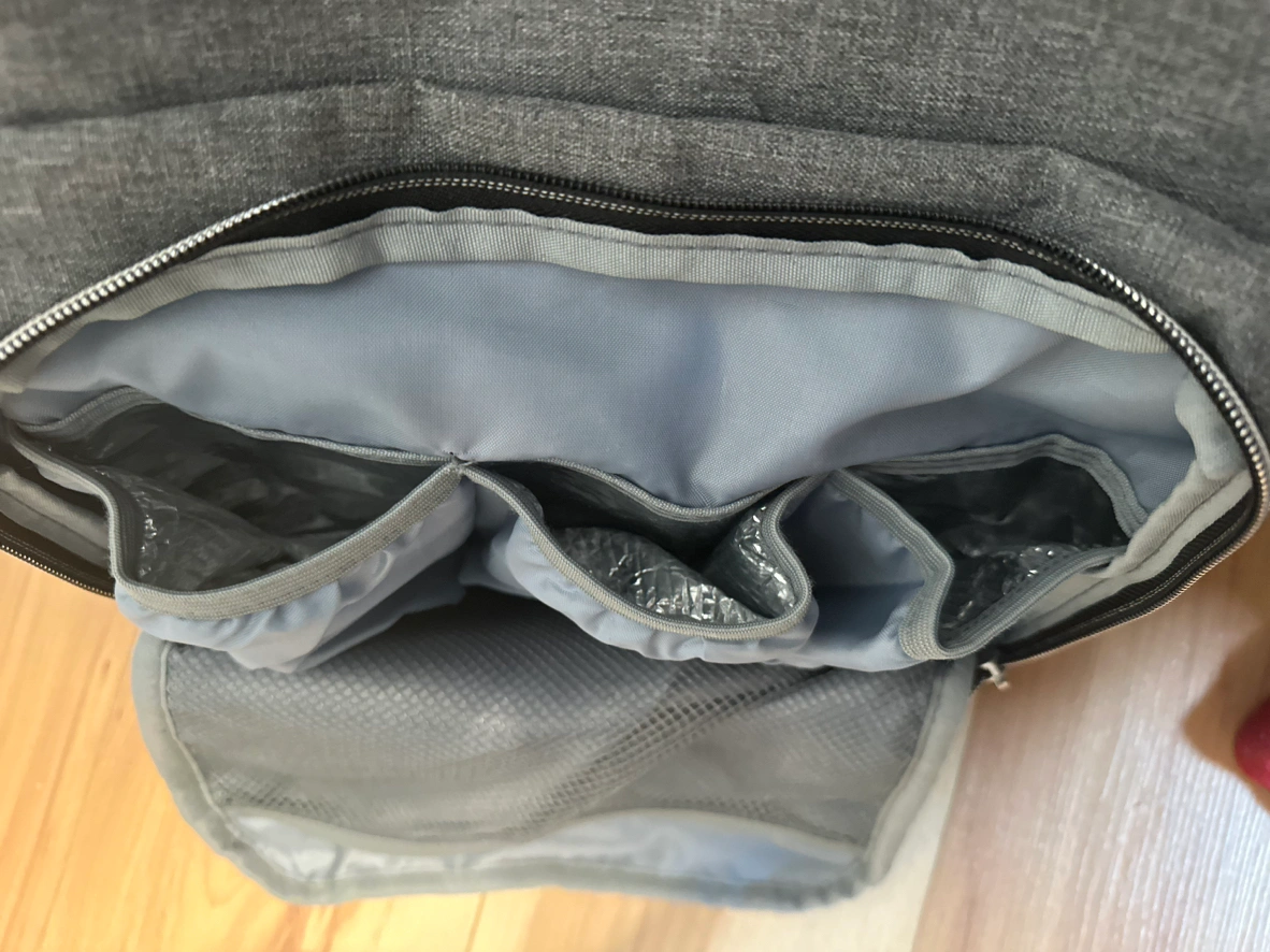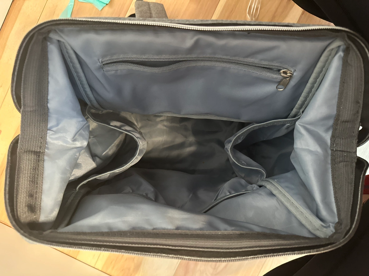 - lots of space with different compartments for various things (extra clothes, wipes, snacks, diapers, bibs, socks, creams)