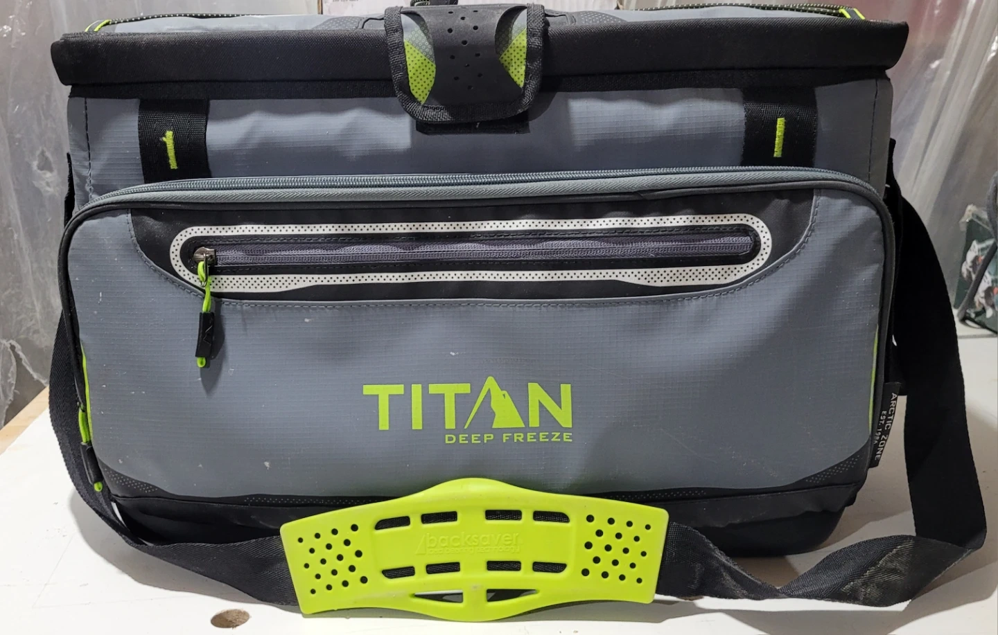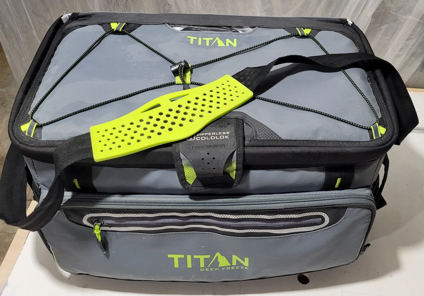 Selling a Titan Deep Freeze Zipperless Cooler in great condition! It's grey with neon green accents. This cooler has a zipperless design with Coldlok technology. Perfect for keeping your drinks and snacks cold on the go!
