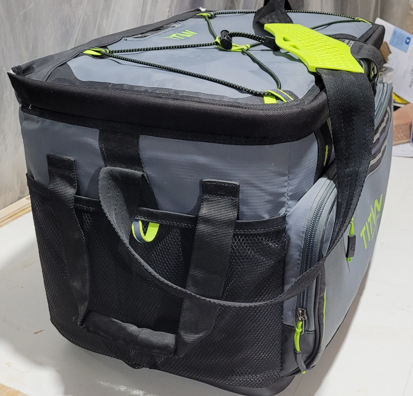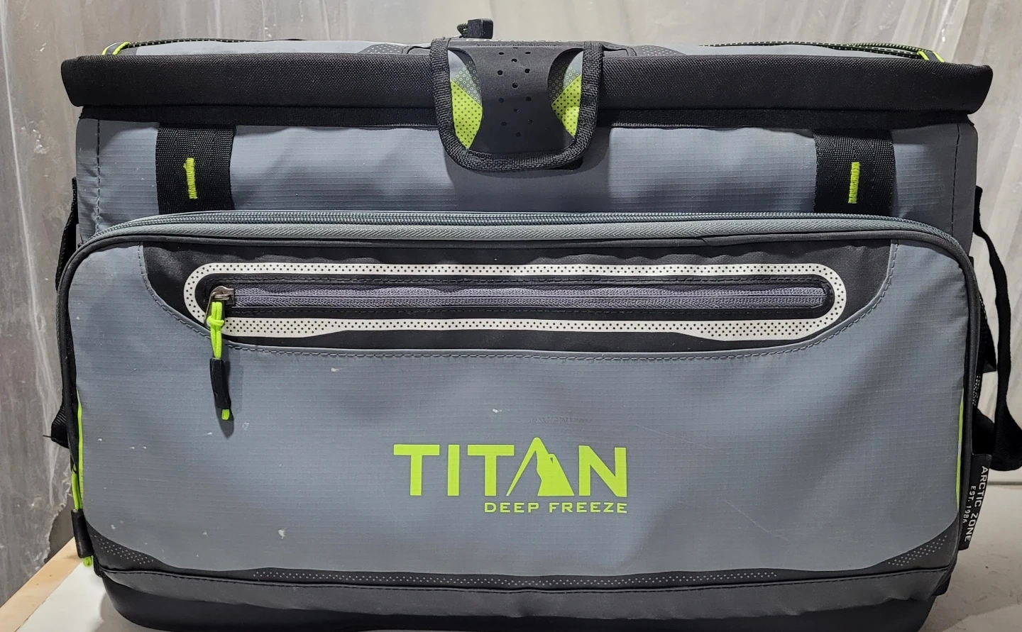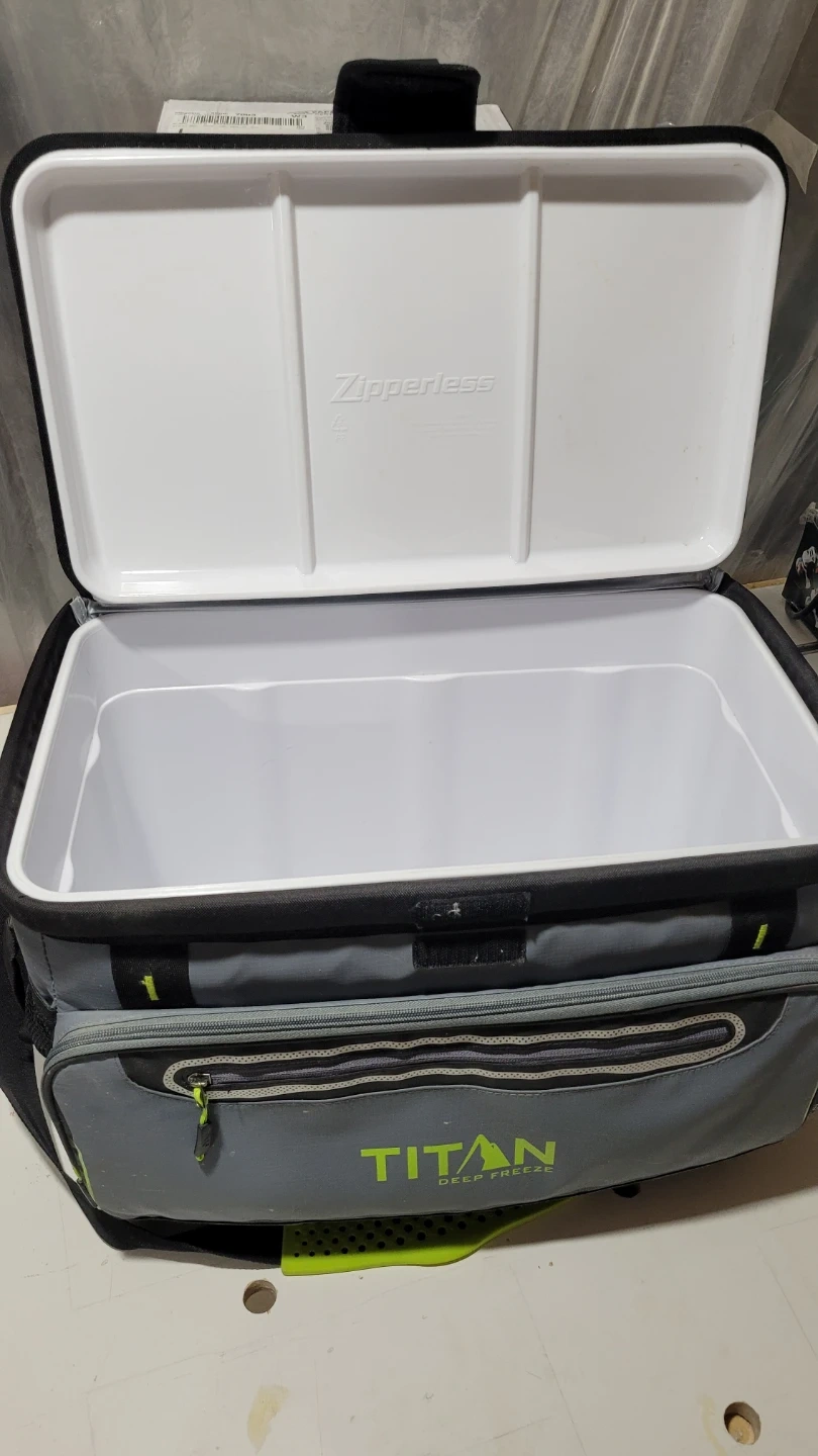 Selling a Titan Deep Freeze Zipperless Cooler in great condition! It's grey with neon green accents. This cooler has a zipperless design with Coldlok technology. Perfect for keeping your drinks and snacks cold on the go!