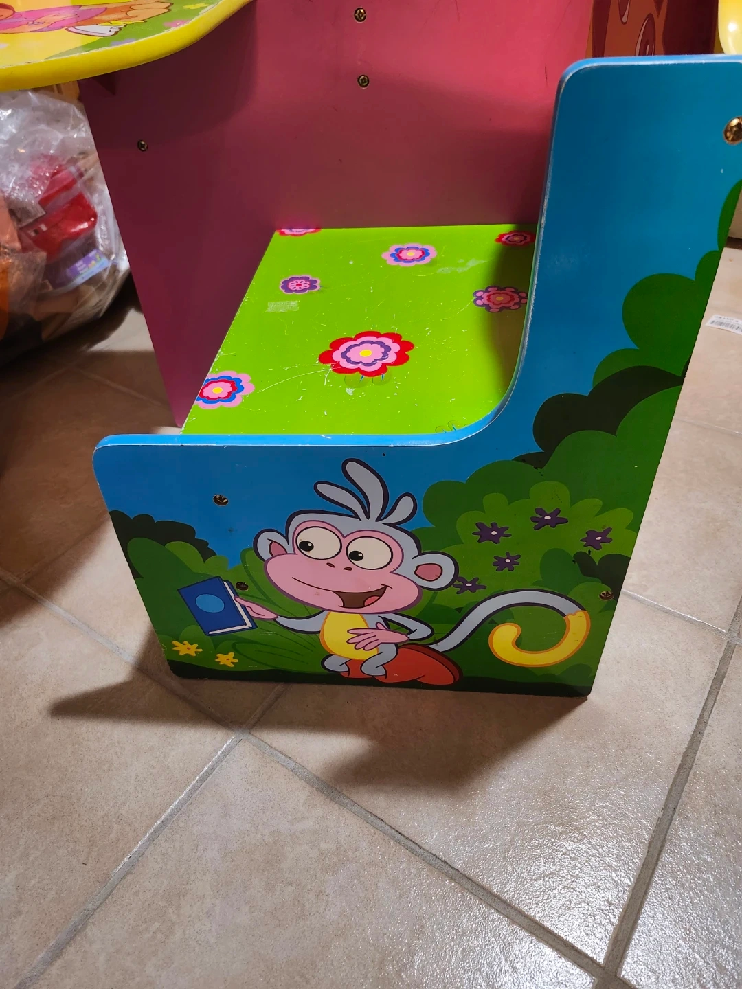 Its been used but still good to use ages 2-5 years old. Some of the paint on the Top and the sit is peeled off due to having stickers on it.