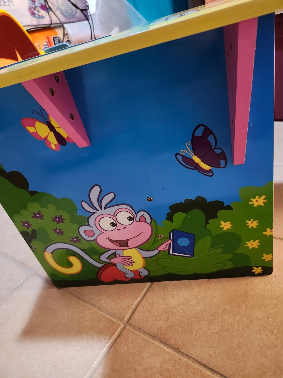 Dora desk the sit opens but you need to hold it and you can store things.