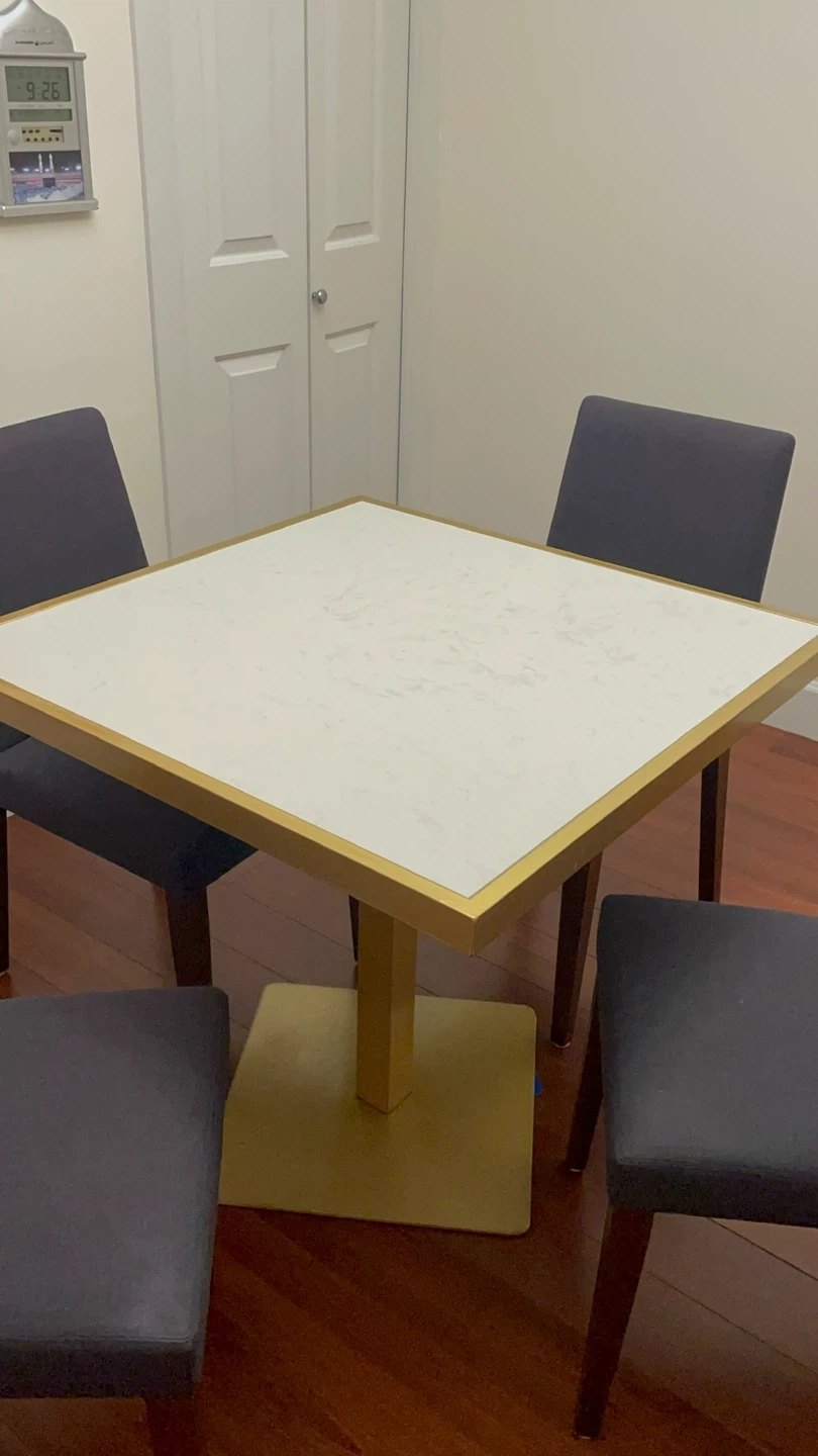 Quartz top dining table and 4 dining chairs. I’m great condition.