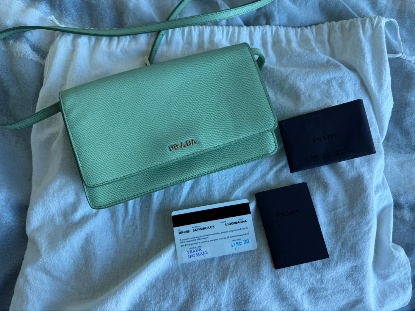 Prada Saffiano Lux Aquamarina Crossbody