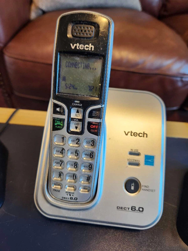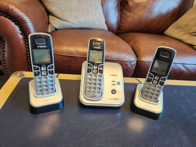 91This VTech DECT 6.0 phone system comes with a base station and two handsets, offering reliable communication throughout your home. Good working condition. Key Features: * DECT 6.0 technology for clear sound and enhanced security * Multiple handsets for convenient use in different rooms * Digital answering system to record missed calls These phones are perfect for anyone needing a dependable home phone system. If the ad is up, the item is still available.