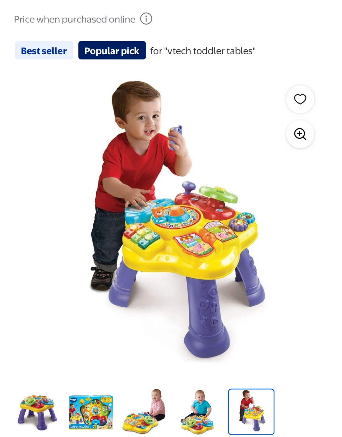 20The VTech Magic Star Learning Table is perfect for little ones aged 6-36 months! This bilingual table offers 2 ways to play: table play and floor play. It features 6 areas that play songs, sounds, and phrases to help your child learn and explore