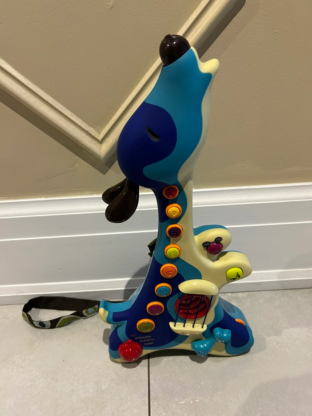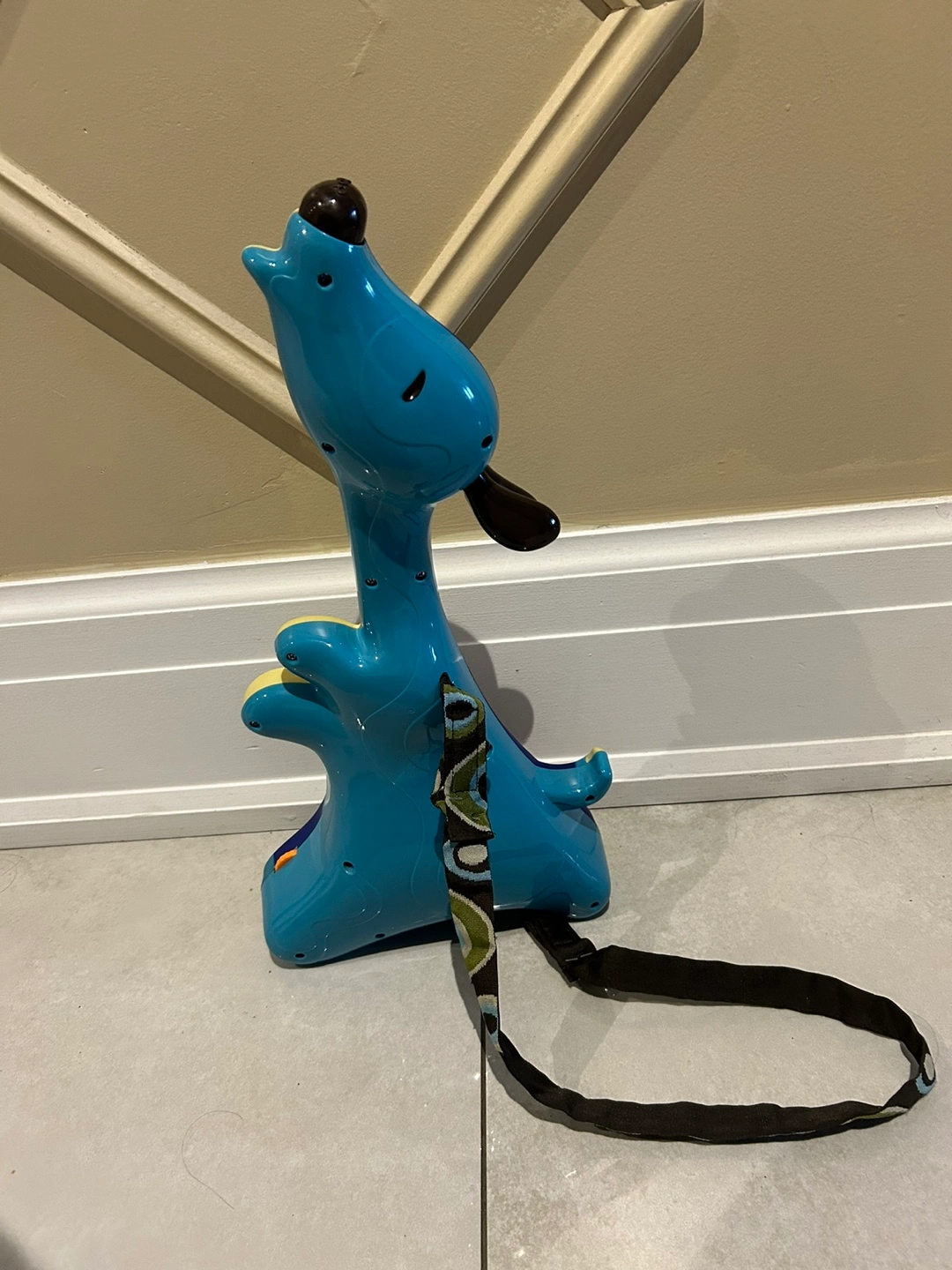 Adorable VTech musical puppy toy. Features lights and sounds. Includes a shoulder strap. Great for toddlers. Fun Doggie: Incudes 20 Sing-Along Songs And Lyrics. Guitar Strings Play Chord Progressions Or Pre-Recorded Tunes. Original price is $60
