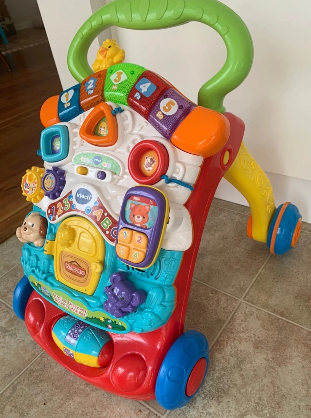 60This VTech Stroll & Discover Activity Walker is perfect for little ones learning to walk and explore! It's got lots of fun activities to keep them entertained, with bright colours and engaging sounds. It's in great condition and ready for a new home!