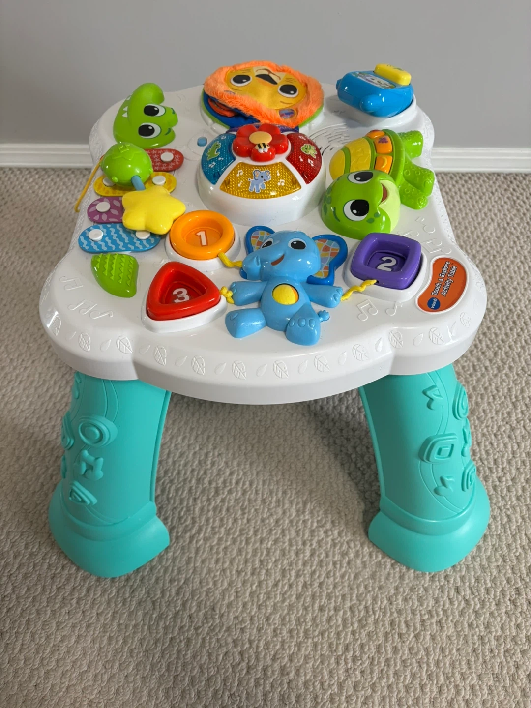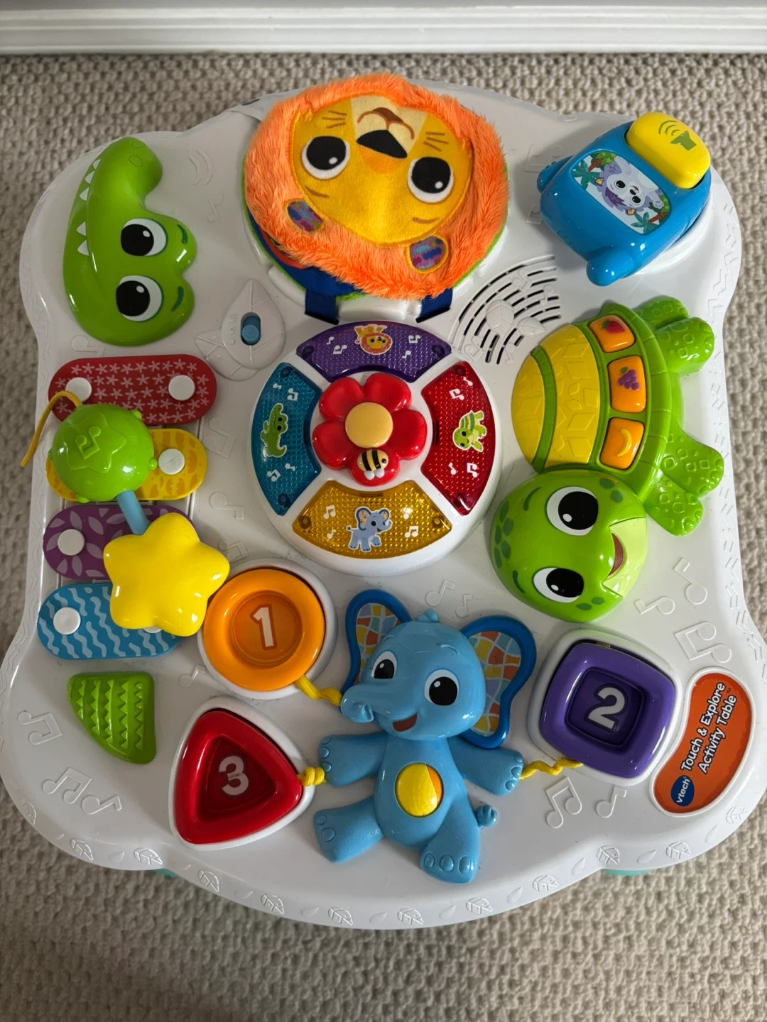 15This VTech Touch & Explore Activity Table is perfect for your little one! It's in great condition and ready for a new home. It's an interactive learning table with lots of fun activities to keep your child entertained and learning at the same time Works great, no issues. Cleaned and sanitized. Legs can come off for babies not quite ready for standing. Cash only. Pick up Spruce Grove.