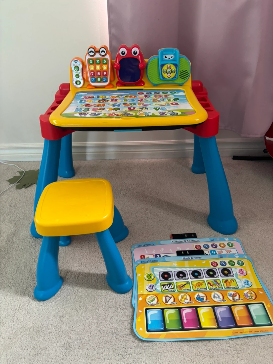 30This is a VTech Touch & Learn Activity Desk Deluxe! It comes with the desk, stool, and 4 interactive desktop insert. Your little one can learn numbers and counting, music, and more!