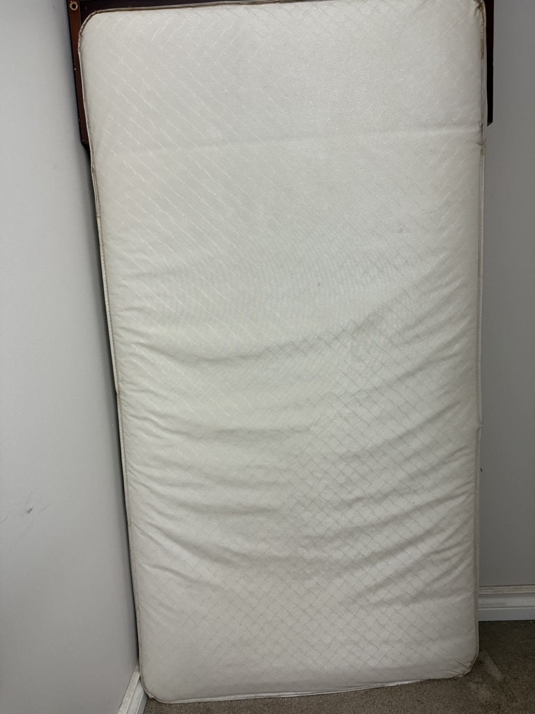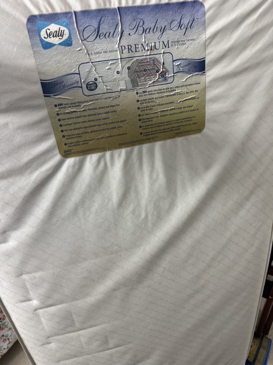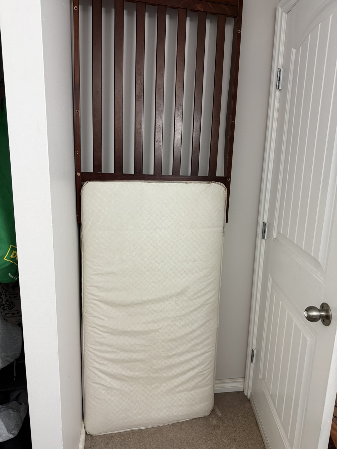 Selling a convertible crib and mattress. The crib is a dark wood colour and in good condition. Includes the mattress and frame. Perfect for a new baby or toddler!
