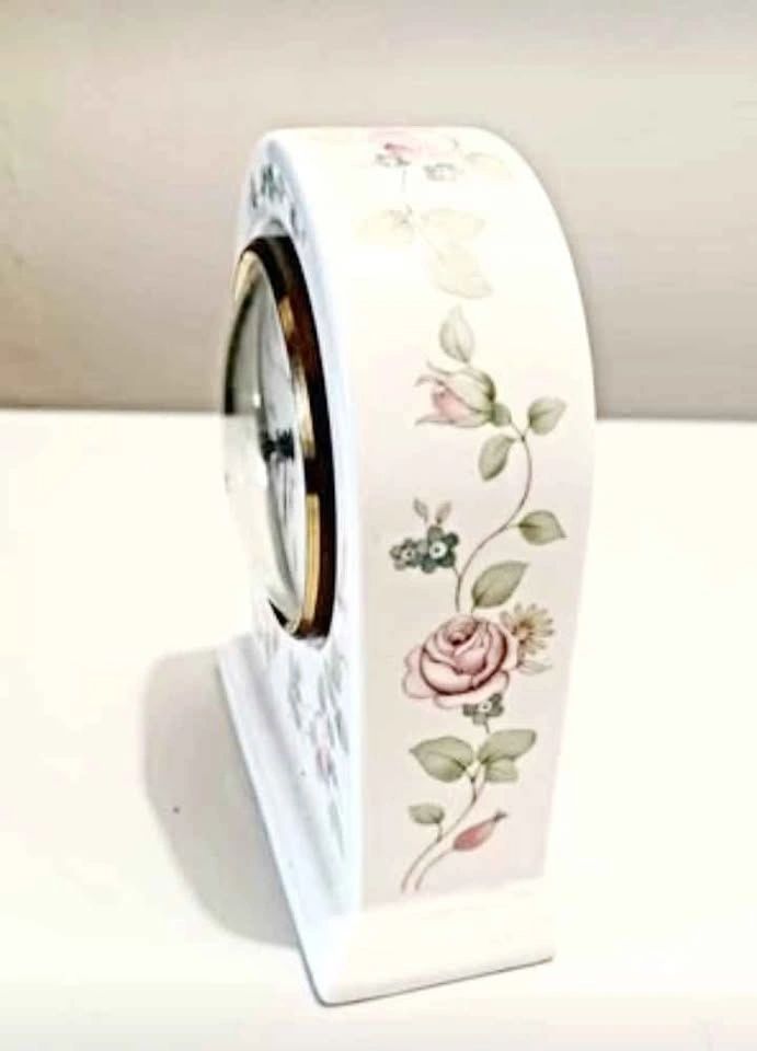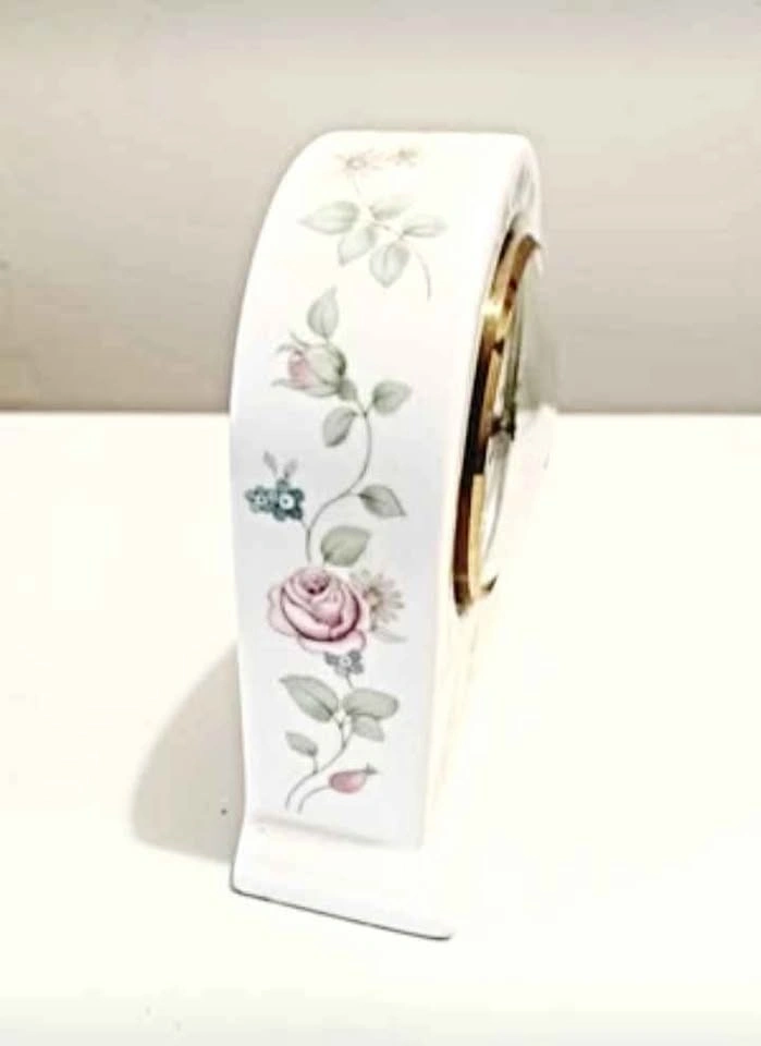 65Vintage, 1991. Retired, Rare, Stamped Floral Bone China Rosehip Wedgwood, Dome Clock. Decorative, Household. Made in England. Excellent Condition, no chips or cracks. Please check out my rare items!