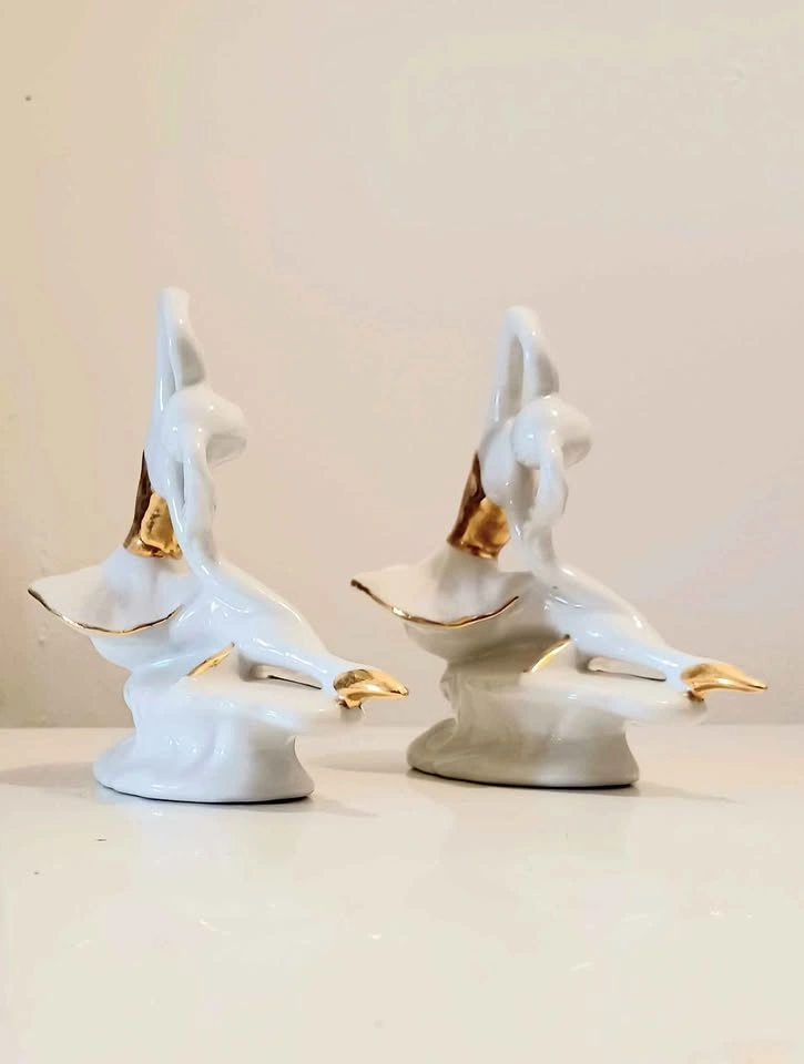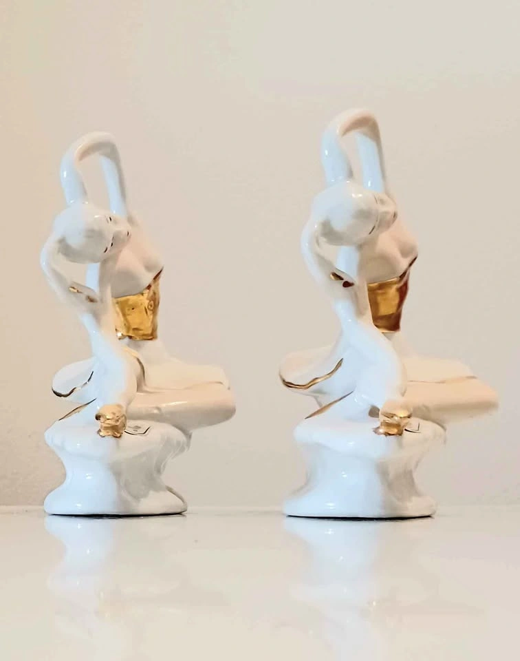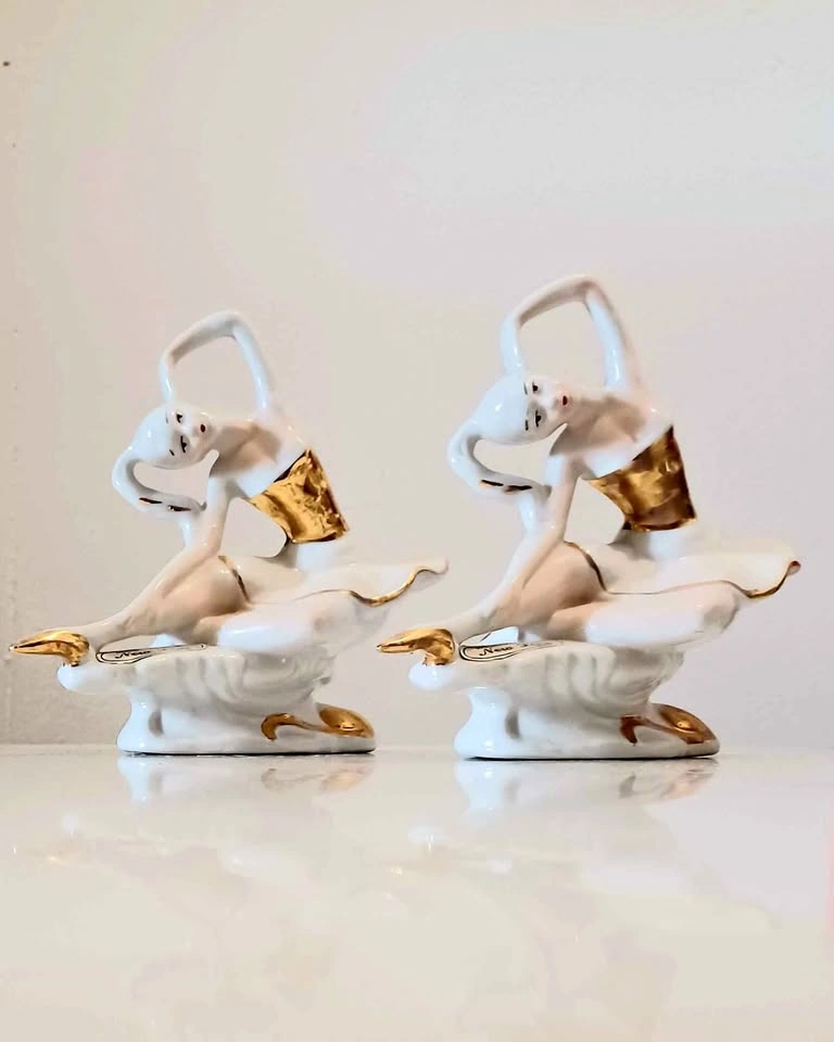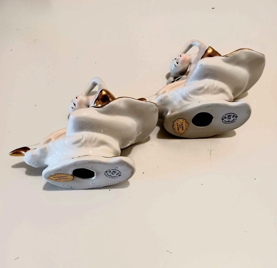 Vintage, Rare, Italian, Pair of Hand Painted, Golden Trimmed Capodimonte Porcelain Ballerina. Stamped, With Stickers. Decorative, Household. Excellent Condition, no chips or cracks. Please check out my other posts!