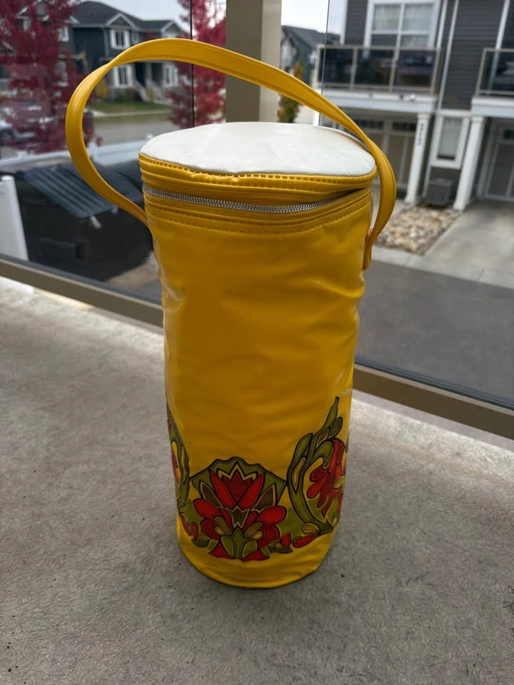 65This is a vintage 1970s Peacock Air Pot, a thermos-style beverage dispenser. The yellow dispenser is made by the Peacock Vacuum Bottle Company and features a floral pattern. These dispensers were made in Japan and were designed to keep beverages hot or cold. NEVER USED! Pick up in Brighton Check my other listings for deals π