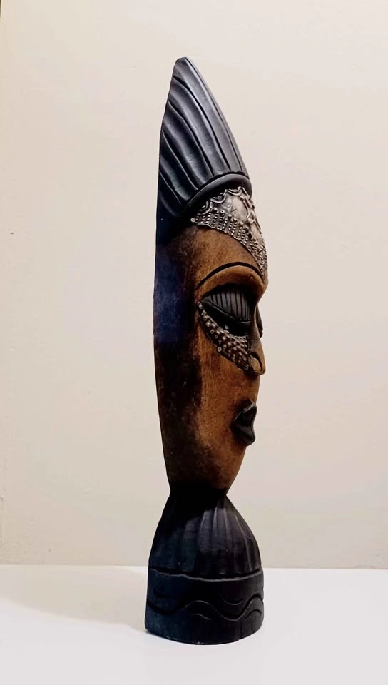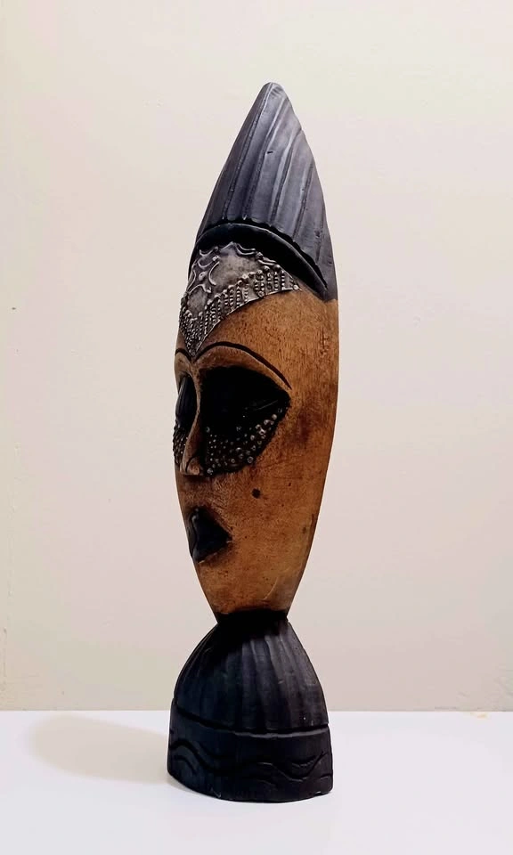 Add a touch of cultural artistry to your home with this unique African carved mask. This striking piece showcases intricate carving and design, characteristic of traditional African craftsmanship. This mask is in very good condition and serves as an interesting conversation piece or a distinctive addition to any collection. Please check out my other rare collectibles!