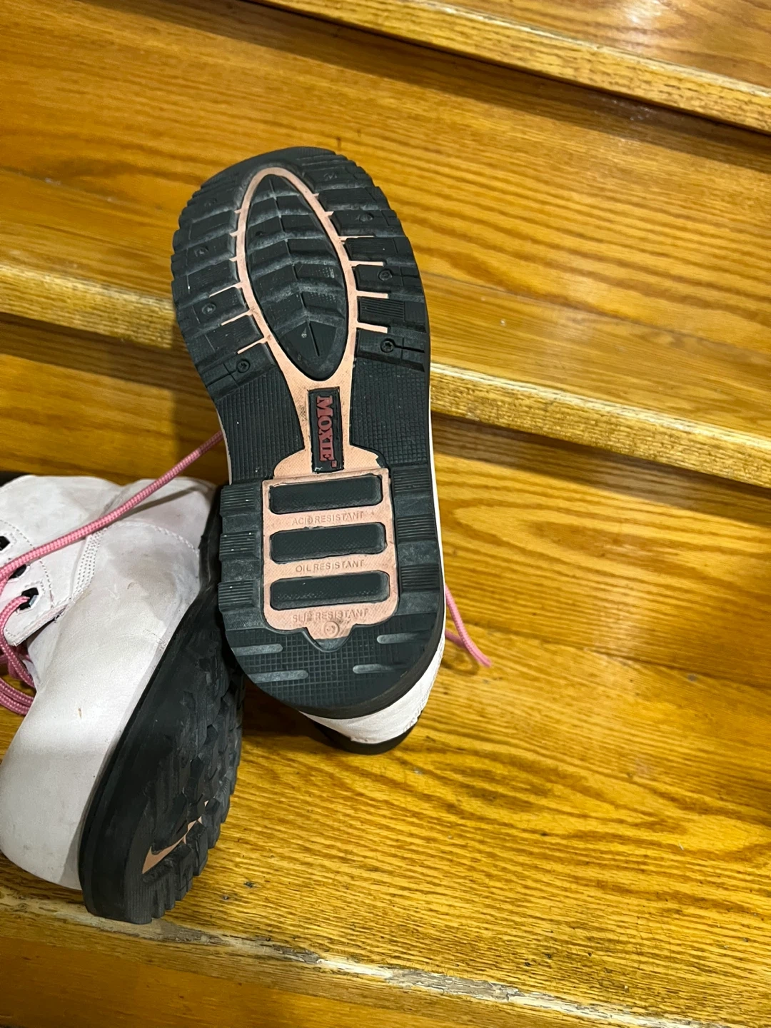 Moxie Trades work boots (steel toe) for women. Pink with black soles and pink laces. The soles are oil resistant. Boots are very gently used. Size 9