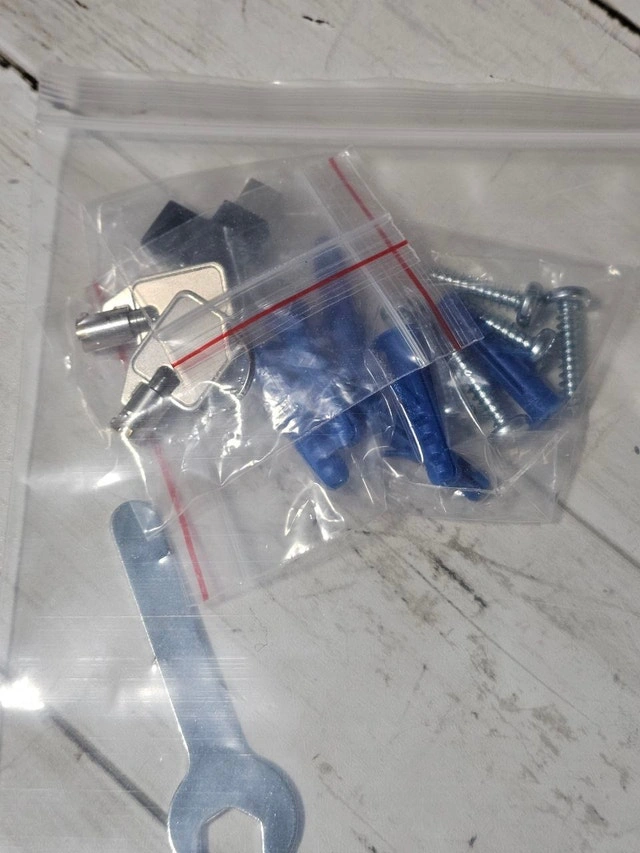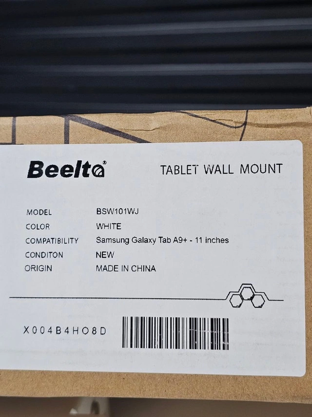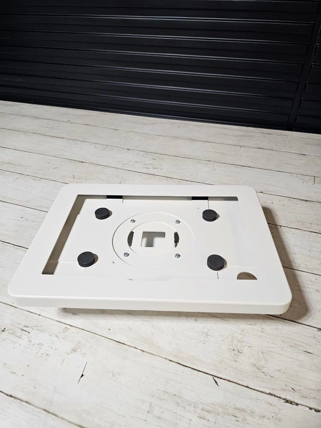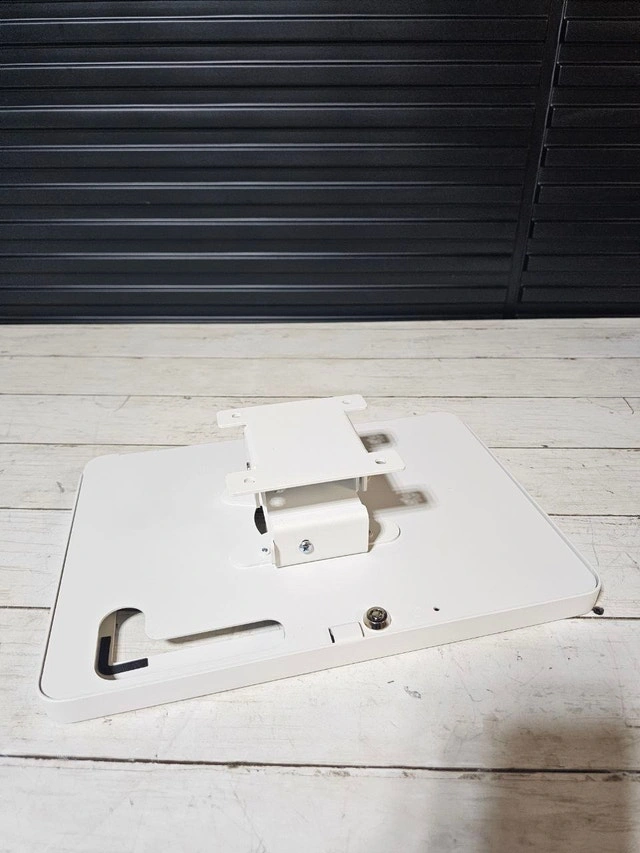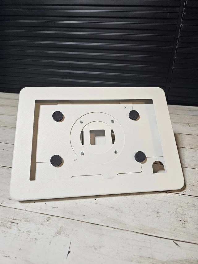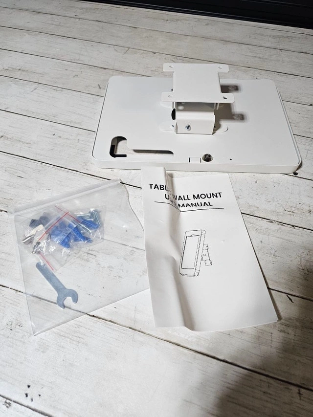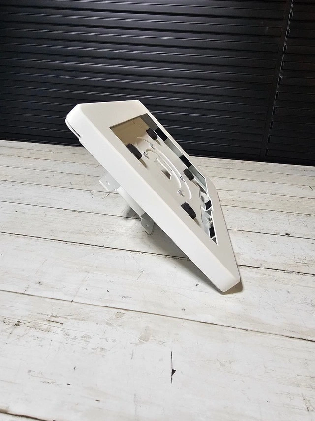 This tablet wall mount is great for public settings like conference rooms, warehouses, libraries, gyms, trade shows, and stores. It's theft-proof and locks with a key. Made of steel and mounts securely to the wall with 4 screws. The mount can tilt up and down 30° for your ideal viewing angle, and it holds the tablet about 2 inches from the wall. You can install it horizontally or vertically. Tilt the frame up before installing or removing the tablet. The cable is hidden inside for charging, and a USB-C splitter is included to protect the charging wire. Condition: New. For Sale By: Owner.