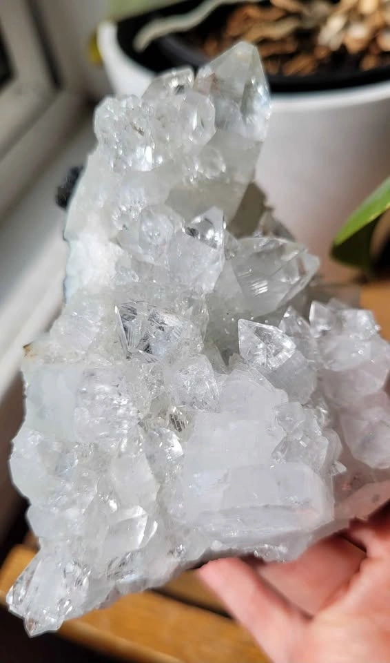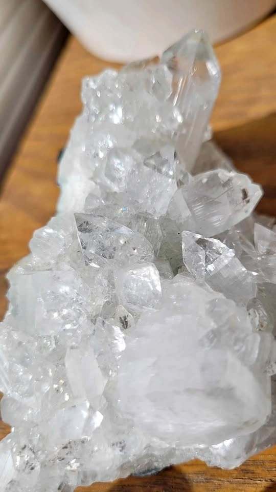 This stunning white diamond apophyllite cluster sparkles with an ethereal brilliance—its translucent, prismatic crystals catching the light in a mesmerizing dance of reflections. 💎🪽