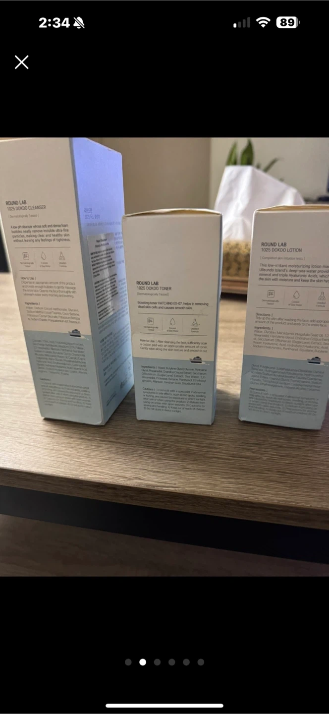 Selling a skincare set from ROUND LAB, the 1025 Dokdo line! This set includes the cleanser, toner, and lotion. The Dokdo line is known for its gentle and effective formulas, perfect for sensitive skin. Get the complete routine in one go!