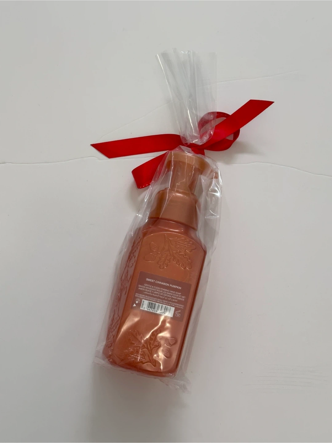 This is a foaming hand soap from Bath & Body Works in the Sweet Cinnamon Pumpkin scent. It comes in a 236 mL (7.5 fl oz) bottle. It's a lovely scent for fall!